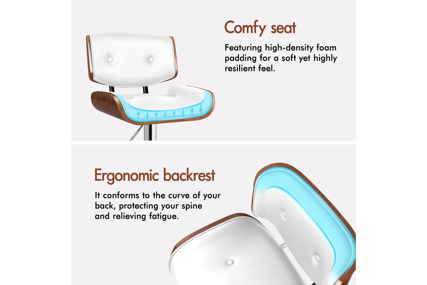 - Seat Material: Solid plywood and PU leather