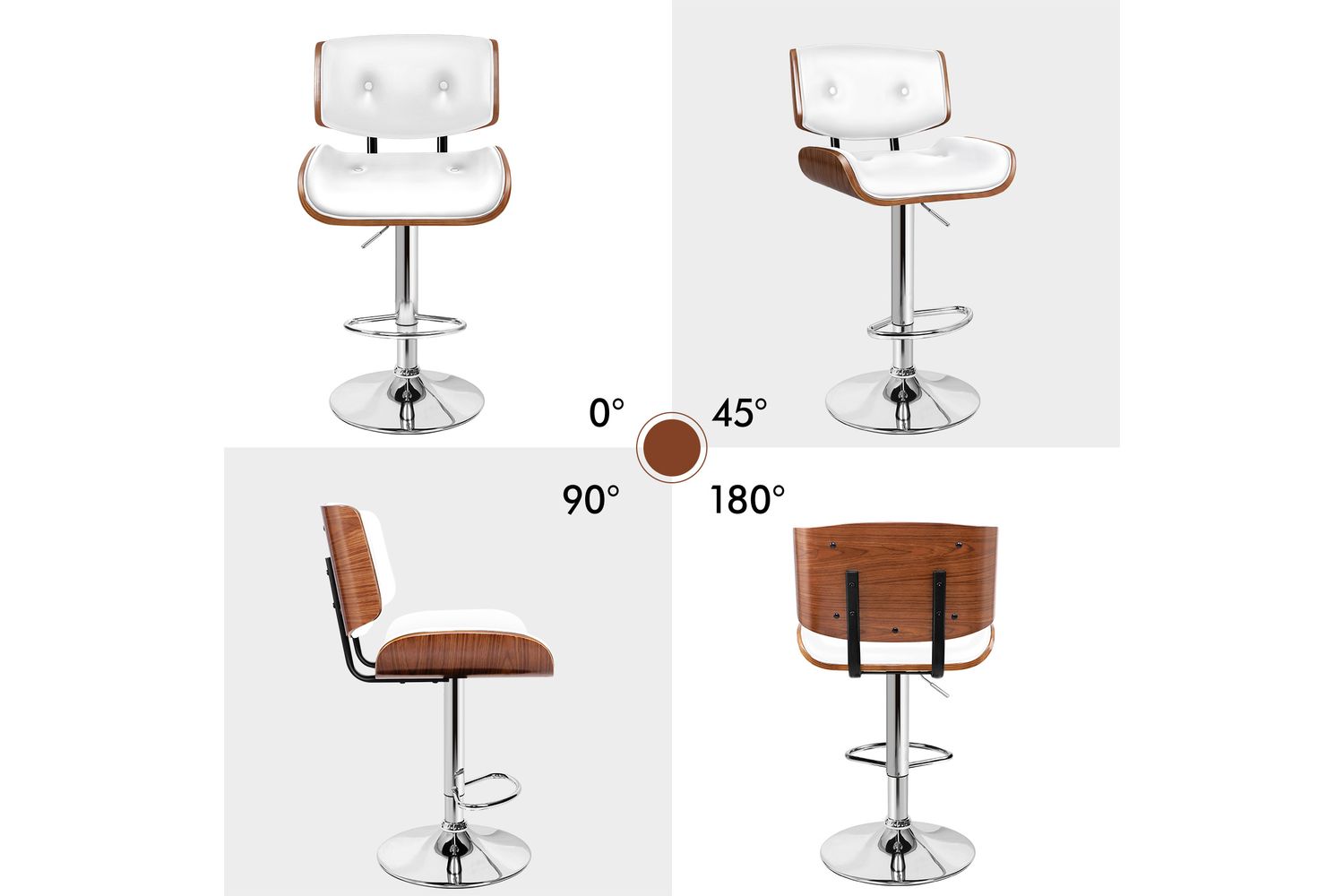 Alfordson Odette Bar Stool | Swivel | Faux Leather | White