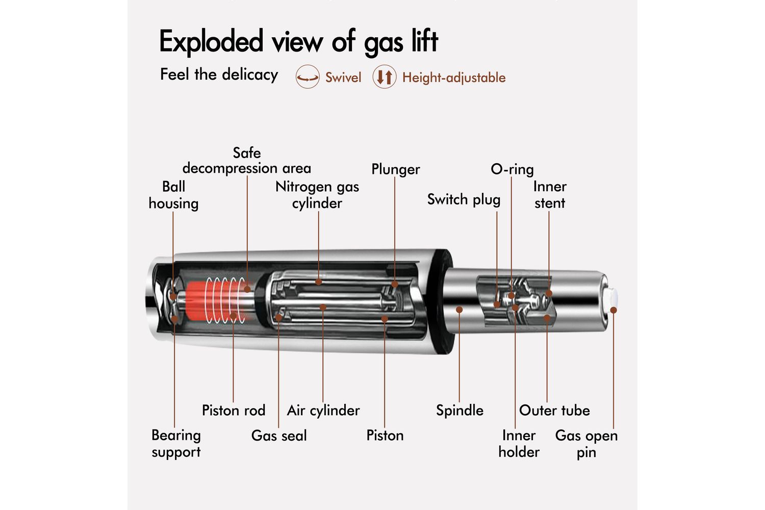 - Height-adjustable gas lift mechanism for custom comfort