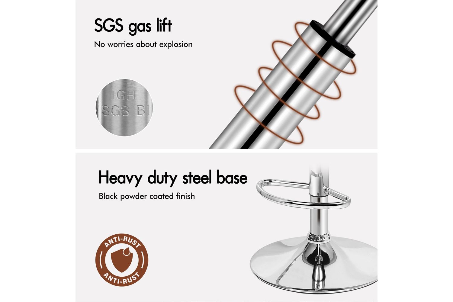- Base Material: Steel with black powder-coated chrome