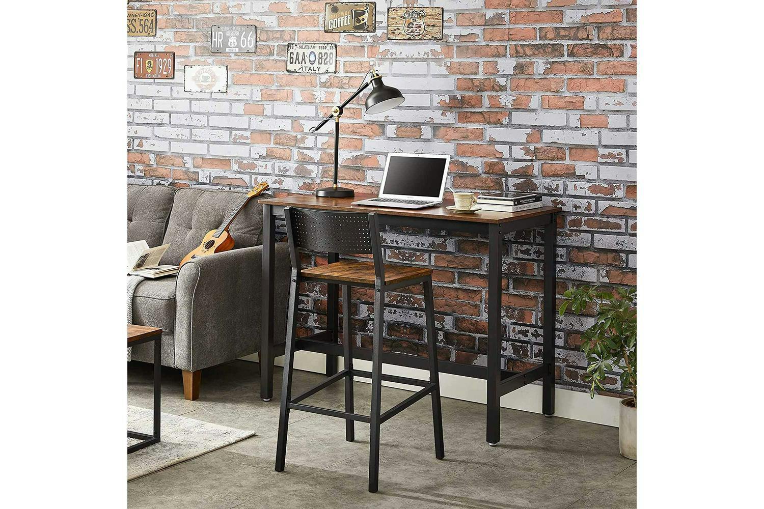 VASAGLE Bar Stool | Particleboard And Steel | Rustic Brown And Black | 43.1 x 50.7 x 97.2 cm
