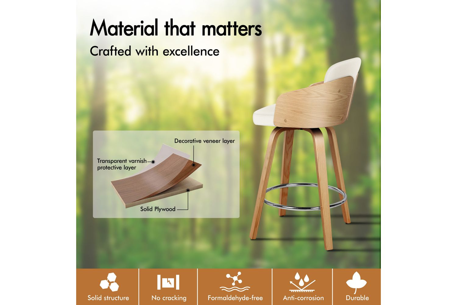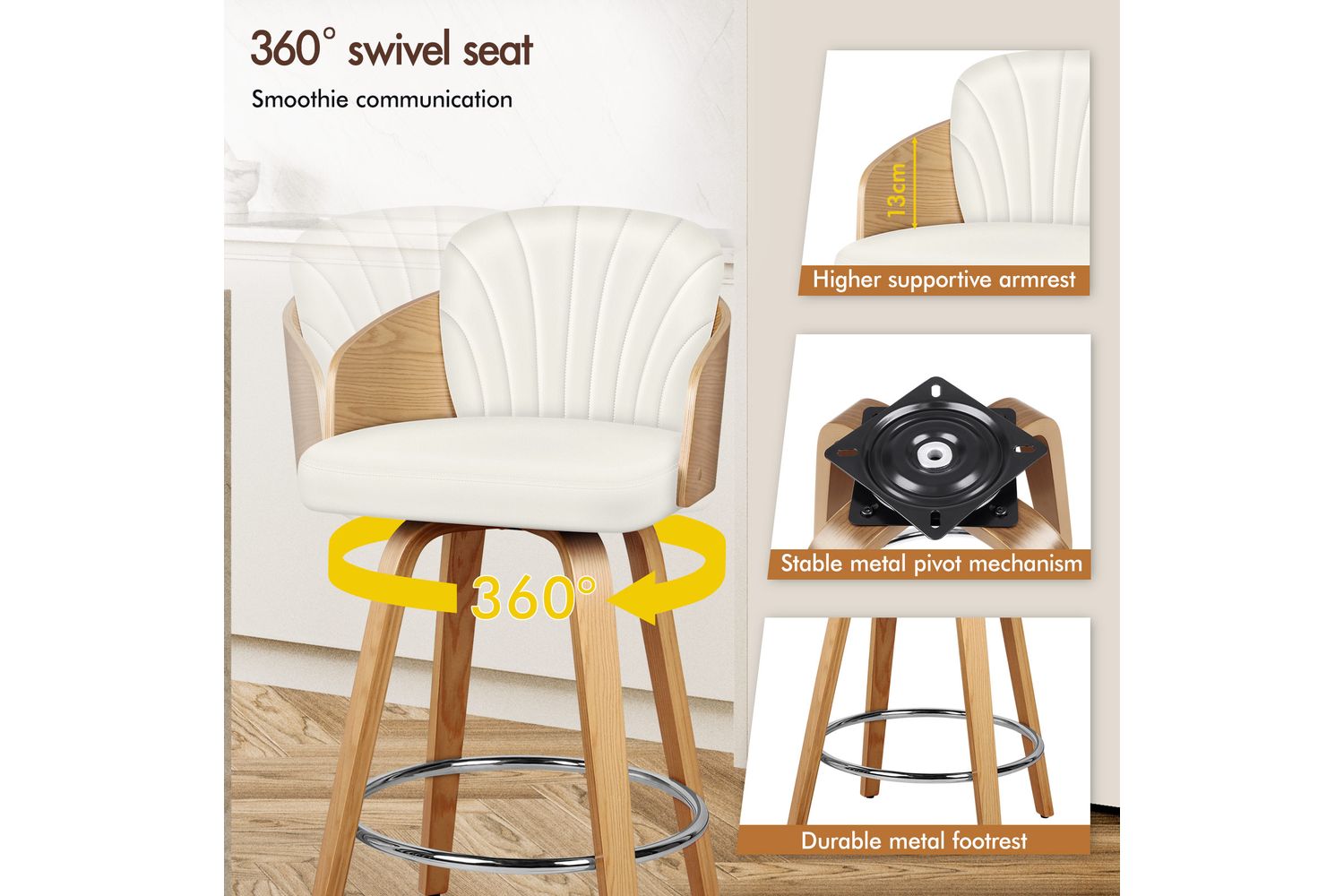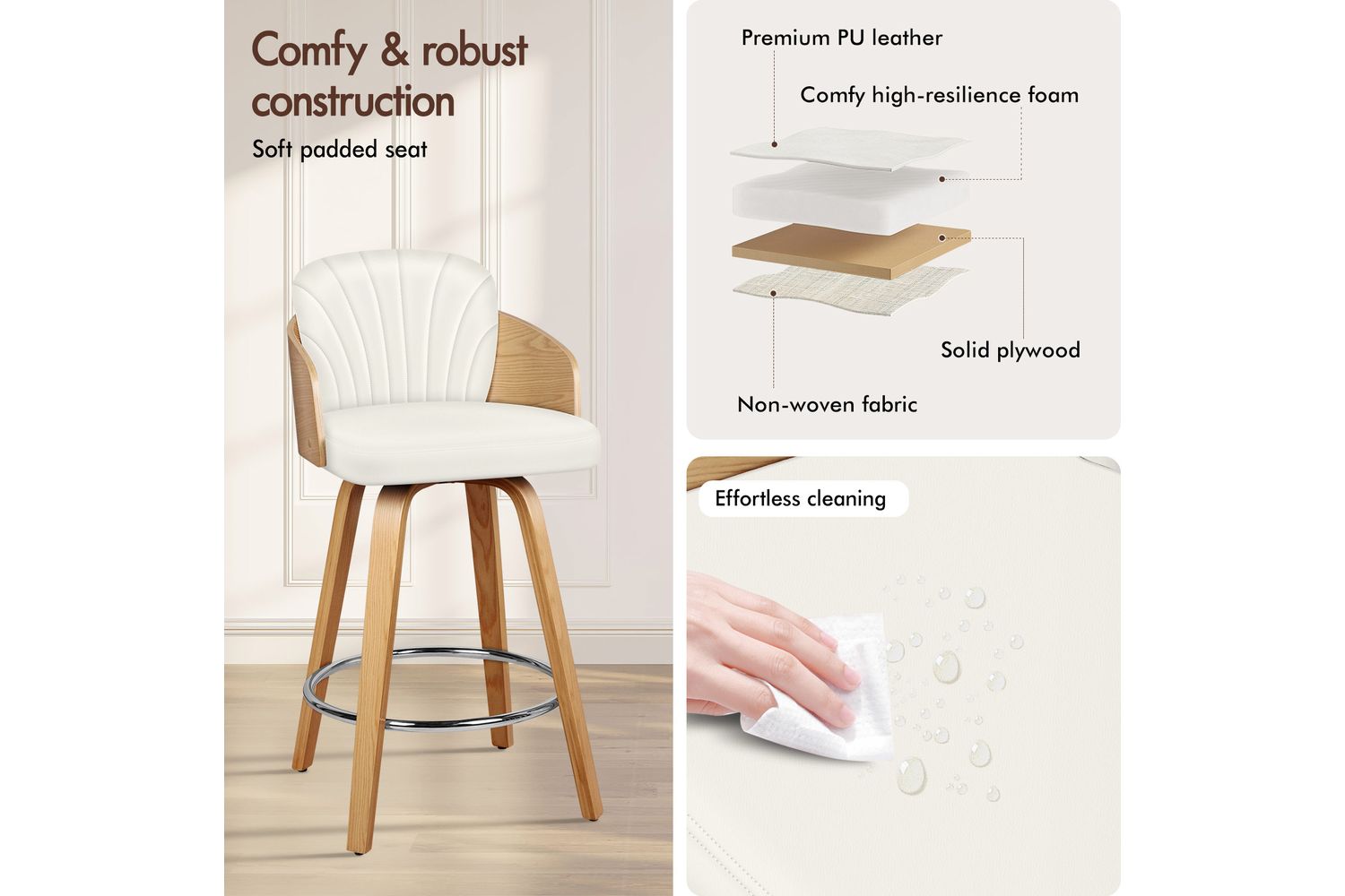Crafted with a harmonious mix of premium PU leather, solid plywood, and chrome steel, these barstools deliver a sophisticated look that complements both contemporary and classic interiors. The plush, high-resilience foam cushioning on the seat and backrest ensures exceptional comfort and support, so you can sit back and enjoy long conversations or quick snacks with ease. The 360-degree swivel seat, powered by a robust mechanism with 45 ball bearings, allows you to turn smoothly in any direction, making socialising effortless.