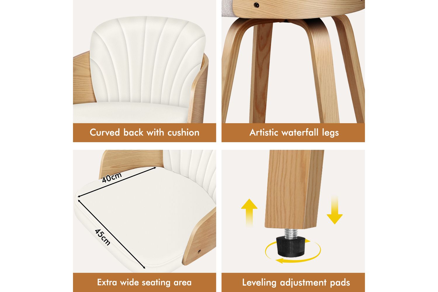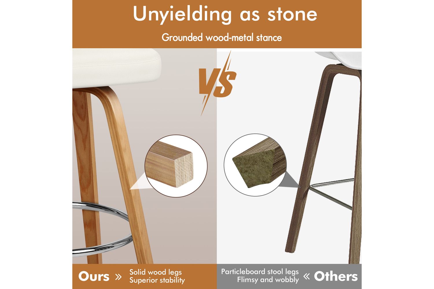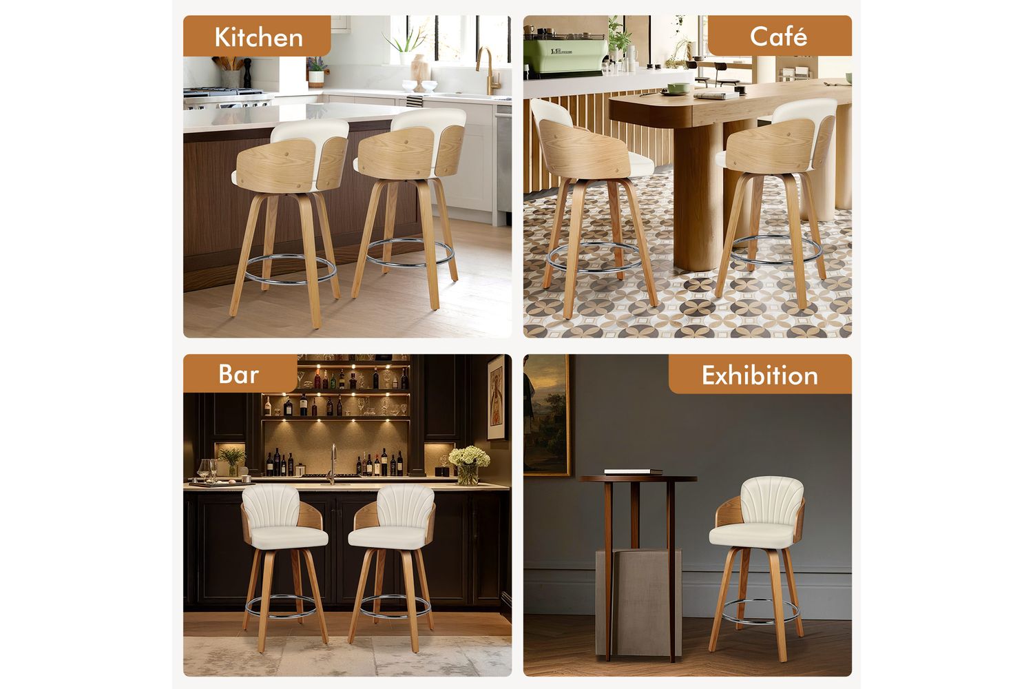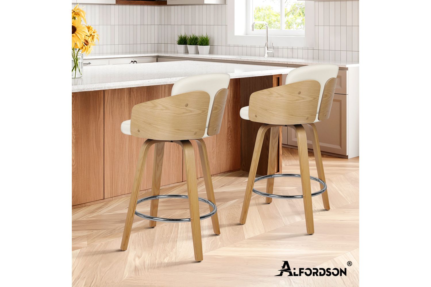 Built to last, the Alfordson bar stools feature a reinforced wooden leg frame with a fine wood grain finish, offering ultra stability and a touch of mid-century modern charm. The artistic waterfall legs and round chrome steel footrest add both style and functionality, while anti-slip floor protectors keep your floors safe from scratches and scuffs. Easy to clean and maintain, the premium PU leather upholstery is perfect for busy Irish households.