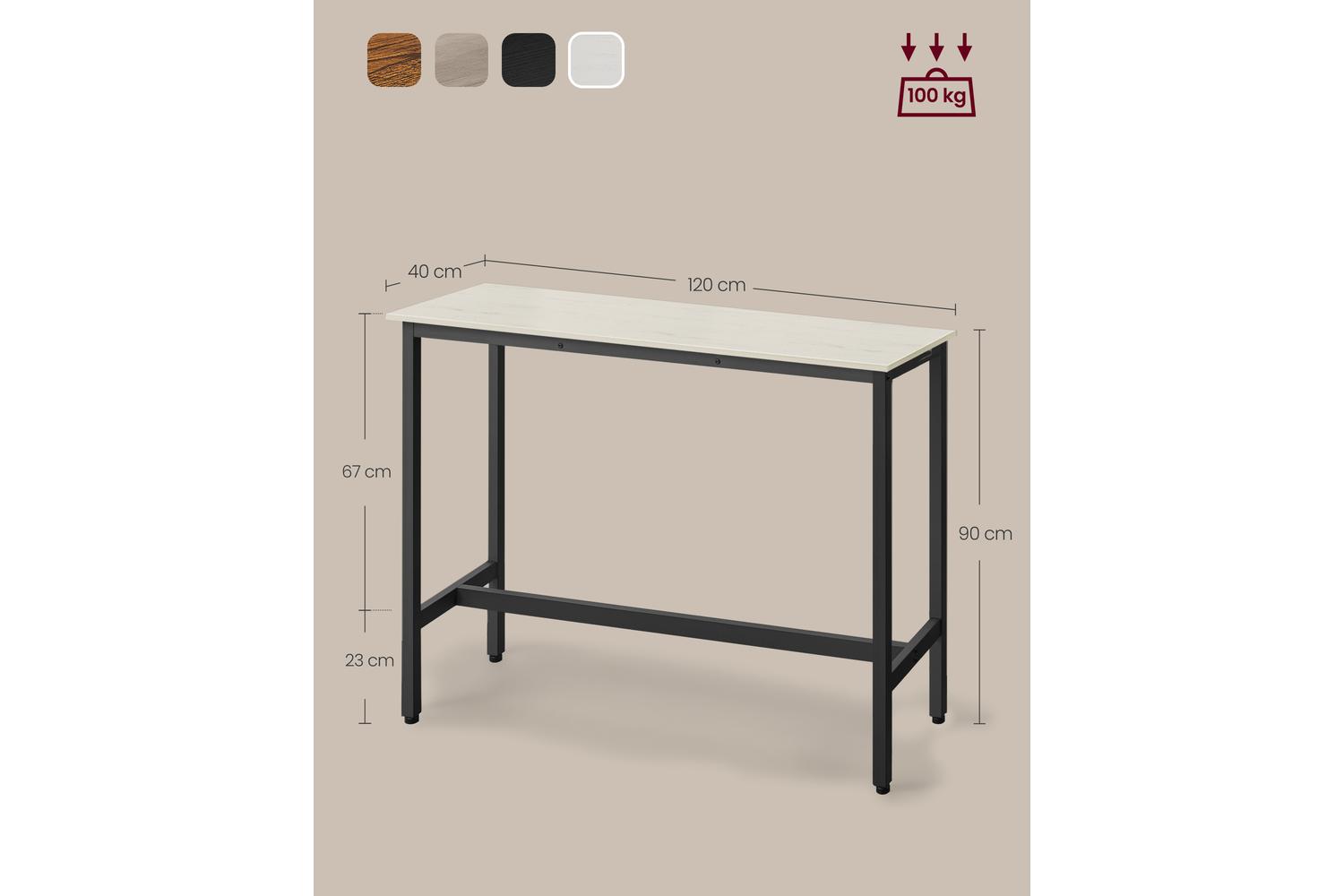 Designed with small spaces in mind, the VASAGLE Bar Table is just 40 cm deep, making it ideal for apartments, compact kitchens, or open-plan living areas. Despite its slim profile, the generous 120 x 90 cm tabletop offers ample space for plates, cups, and cutlery, ensuring you can enjoy meals, work, or socialise in comfort. The sturdy alloy steel frame and wood chipboard top provide lasting durability, while the polished finish adds a touch of sophistication to your home.