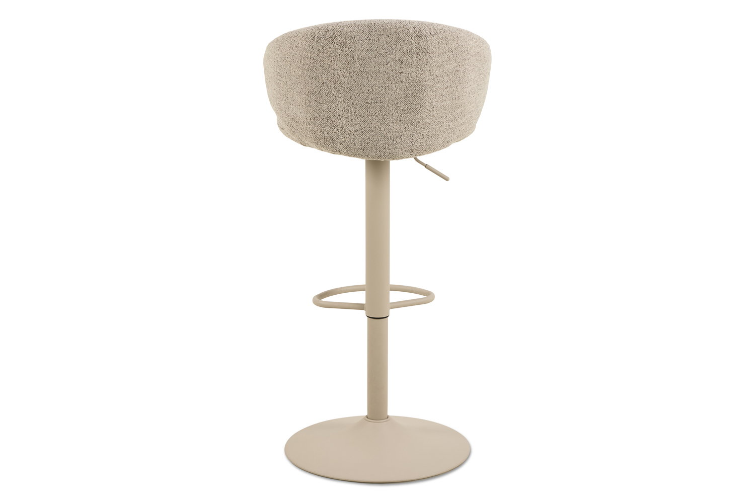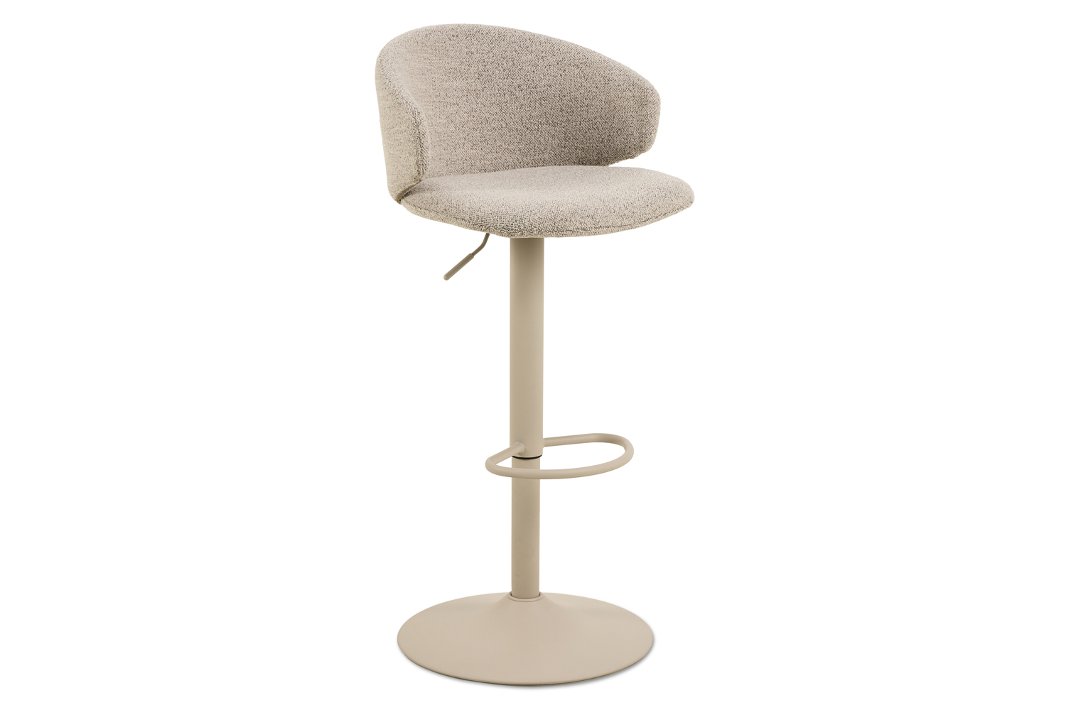 From tip to toe the Benji bar stool has several eye-catching elements that are sure to elevate your kitchen attire. Boasting a short, curved back and cushioned seat, this stool radiates comfort without compromising on style. The soft bouclé-like fabric upholstery exudes contemporary excellence while adding a textural element. This all rests upon a metal trumpet base with a swivel function to make sure you stay supported and at the centre of all conversations. The footrest adds even more comfort and support while dining.