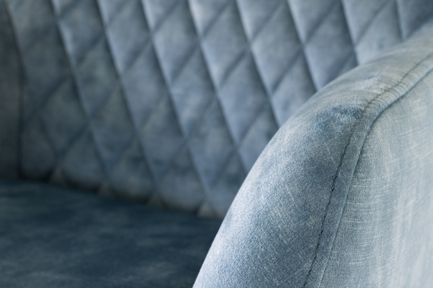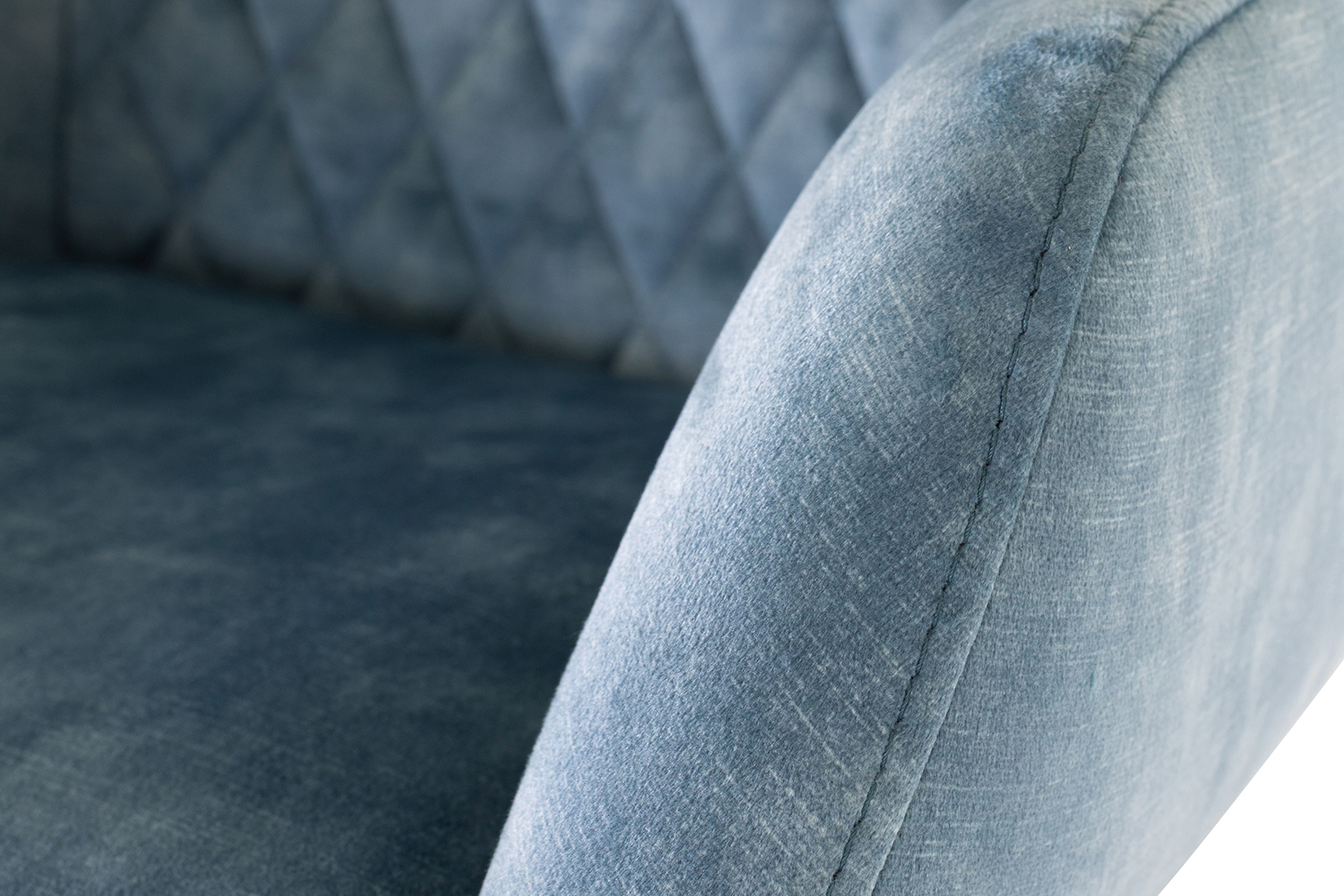 Boasting an avant-garde design, the back of the chair features an intricate diamond quilting, a tactile detail that adds both texture and visual allure. It’s not just a chair; it’s a statement piece that draws attention and elevates any room. With a 360-degree swivel feature, this chair offers the ultimate in versatility. Whether you’re hosting guests or enjoying a quiet meal, the swivel design ensures effortless movement and ease of use, allowing you to turn and adjust with ease. This is all wrapped in a sumptuous velvet upholstery that promise a soft, luxurious feel while offering durability and timeless elegance.
