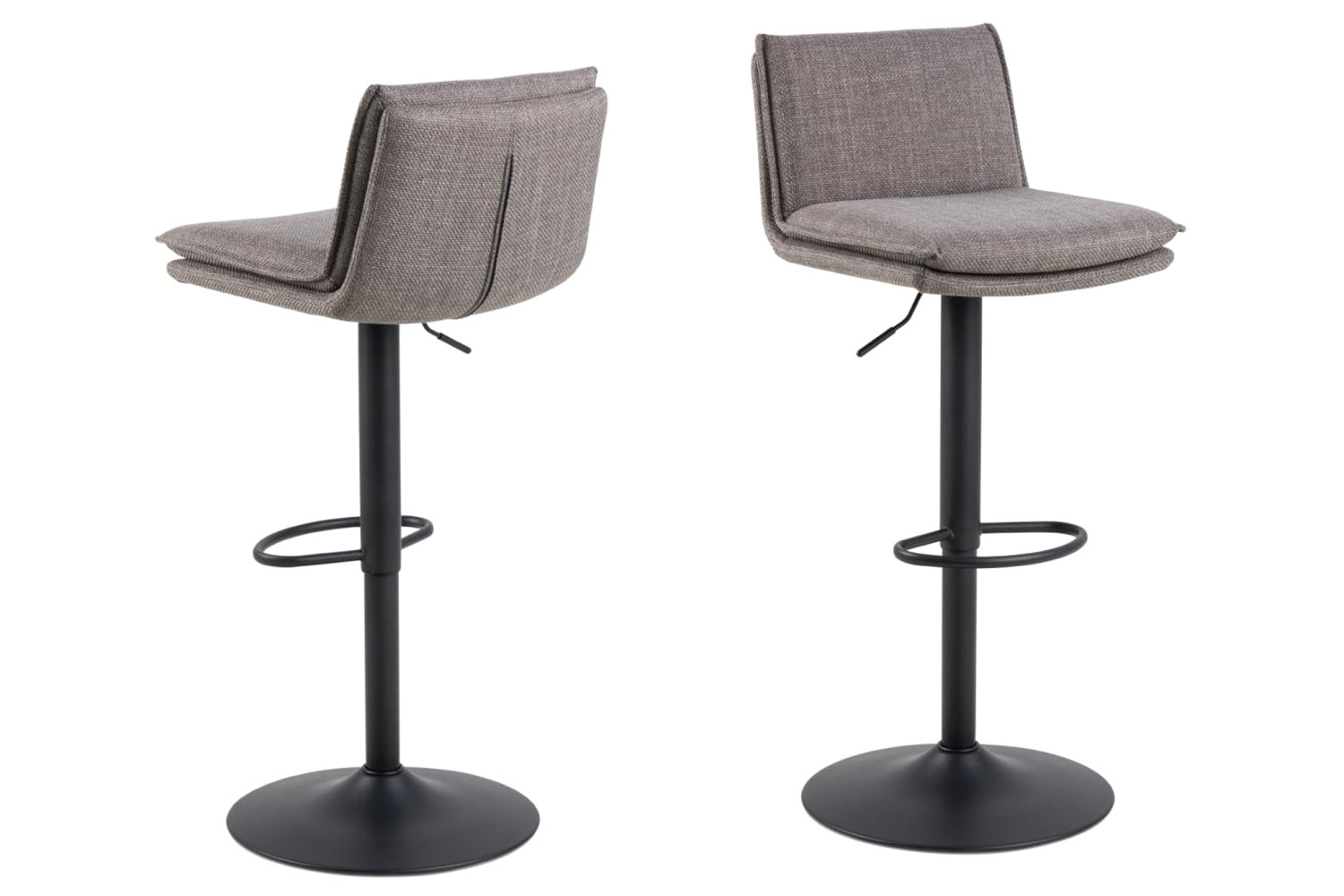 Embodying the classic style and elegance of modern furnishing, the Flynn stool features a L-shaped seat with a low back. Upholstered in a soft light-grey fabric that is made of fire-resistant materials, this seat is designed to stand the test of time and feel amazing while doing so. It includes a footrest, swivel function, and gas lift all of which add to the comfort levels and allows ease of movement. This all rests upon complementing black pillar leg and round base.