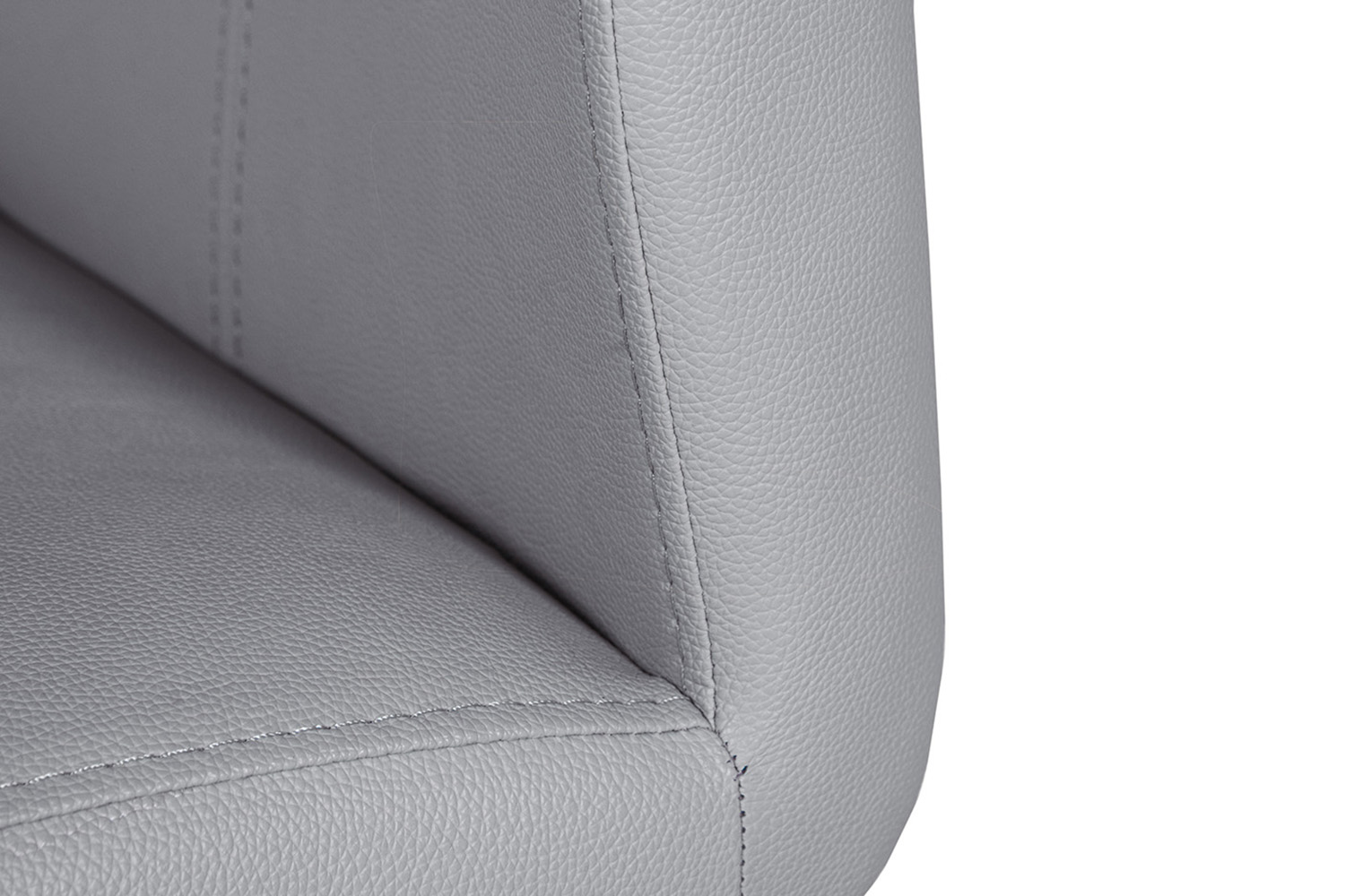 Upholstered in a faux leather fabric, this stool is filled with a comfortable thick foam padding for your comfort and is available in two fabulous colours. Its complete with the sleek black metal legs in a modern curved design
