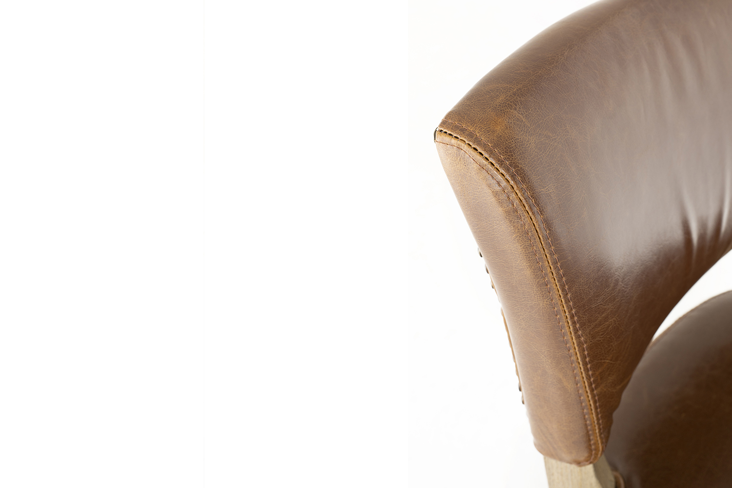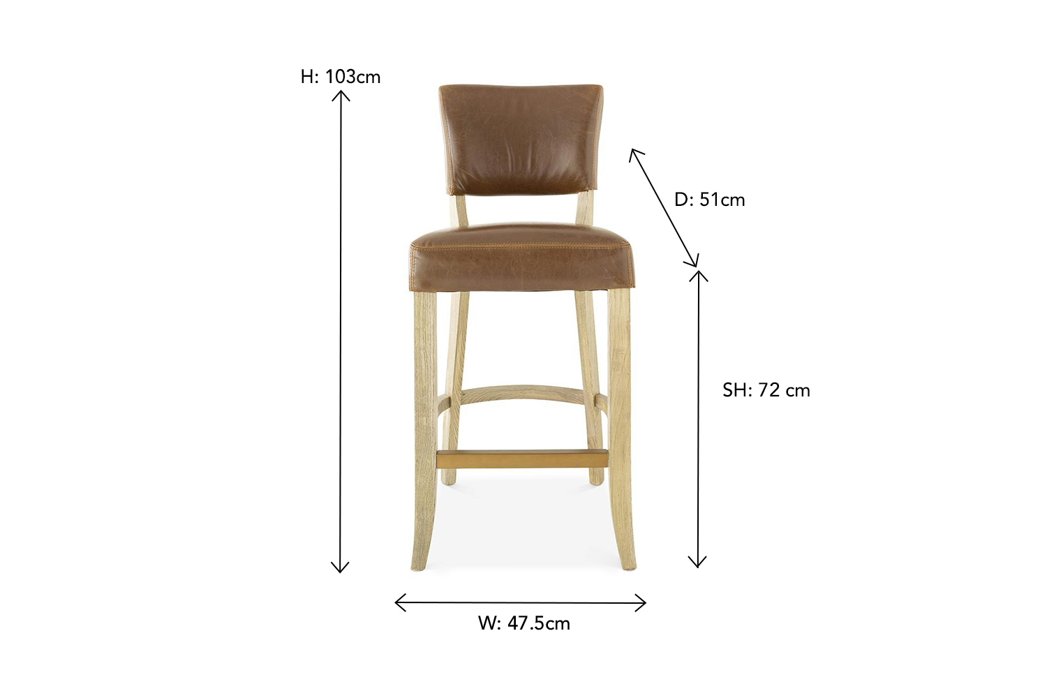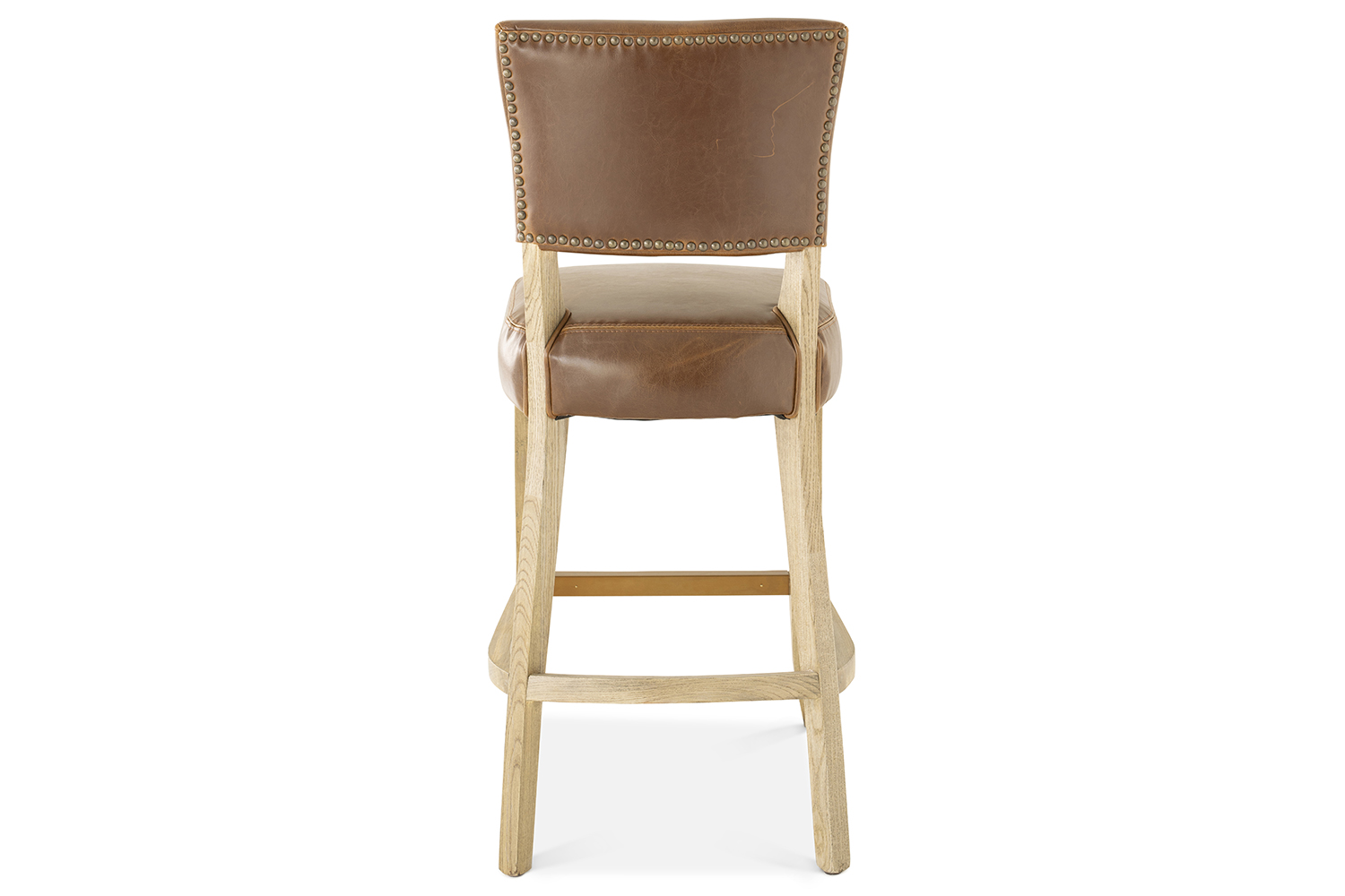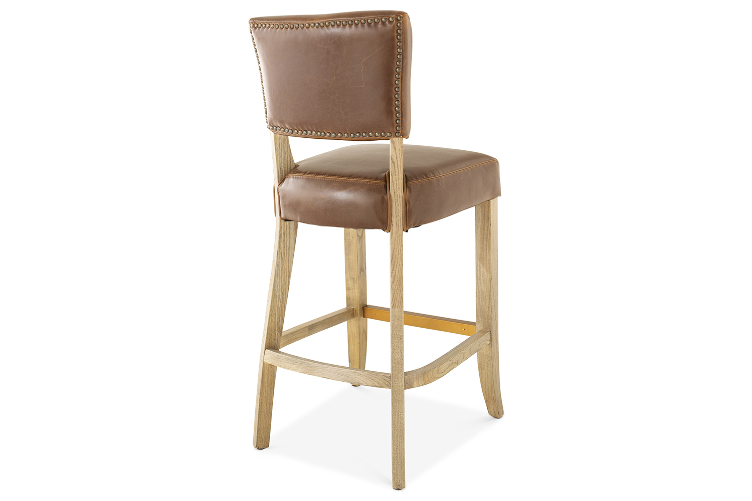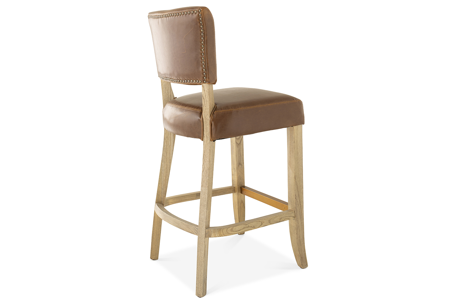 The appeal of this barstool is built upon solid oak legs that run up to its comfortable back. The seat and back are both finished in leather which is also studded for added aesthetic value. In short, this barstool has everything you need to add a touch of style to your kitchen or dining room.
