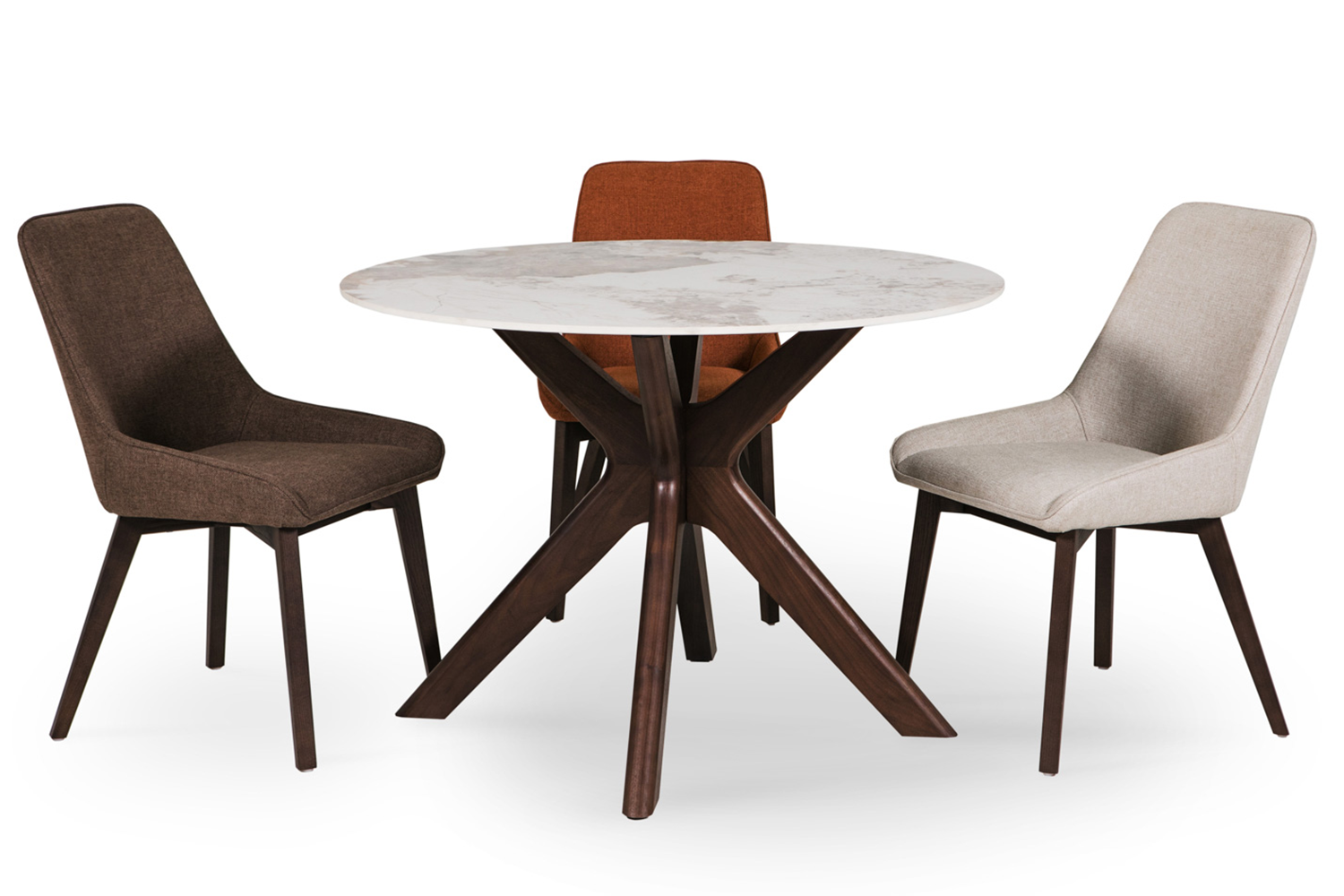 - Walnut veneer on solid ash wood legs