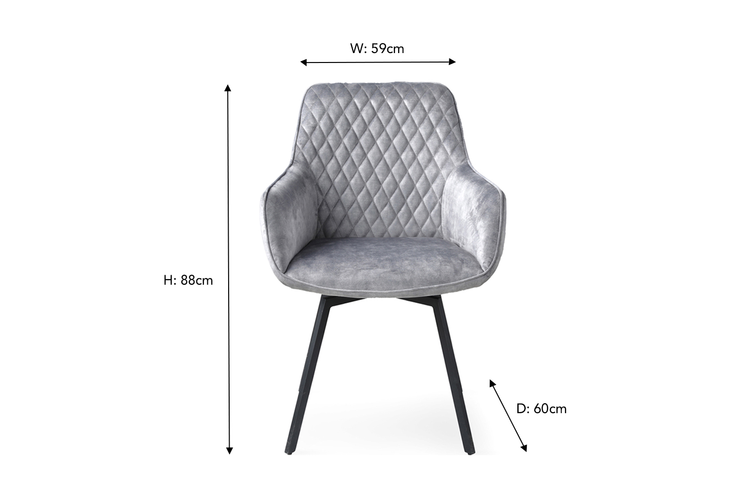 Boasting an avant-garde design, the back of the chair features an intricate diamond quilting, a tactile detail that adds both texture and visual allure. It’s not just a chair; it’s a statement piece that draws attention and elevates any room. With a 360-degree swivel feature, this chair offers the ultimate in versatility. Whether you’re hosting guests or enjoying a quiet meal, the swivel design ensures effortless movement and ease of use, allowing you to turn and adjust with ease. This is all wrapped in a sumptuous velvet upholstery that promise a soft, luxurious feel while offering durability and timeless elegance.