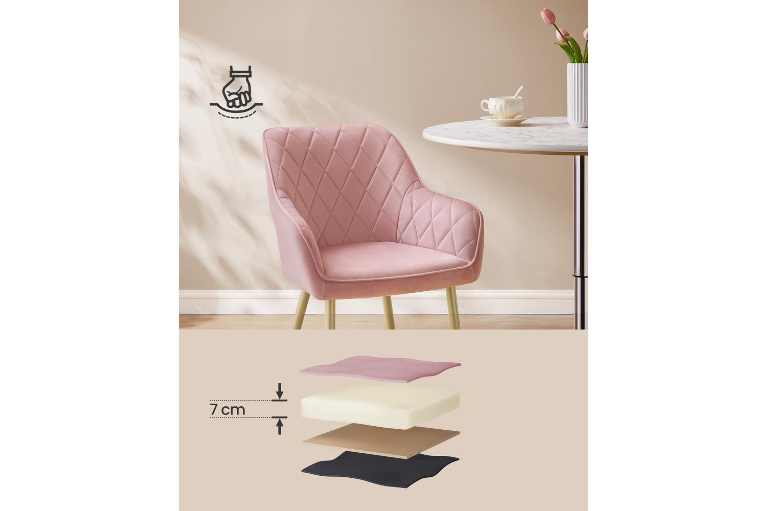 Transform your dining space with the SONGMICS Dining Chair, a perfect blend of modern elegance and everyday comfort. Designed for Irish homes that value both style and practicality, this velvet dining chair in pastel pink brings a fresh, contemporary look to your kitchen, dining room, or even your bedroom. The diamond-quilted velvet upholstery and pale gold metal legs create a sophisticated statement, making this chair a standout piece in any setting.