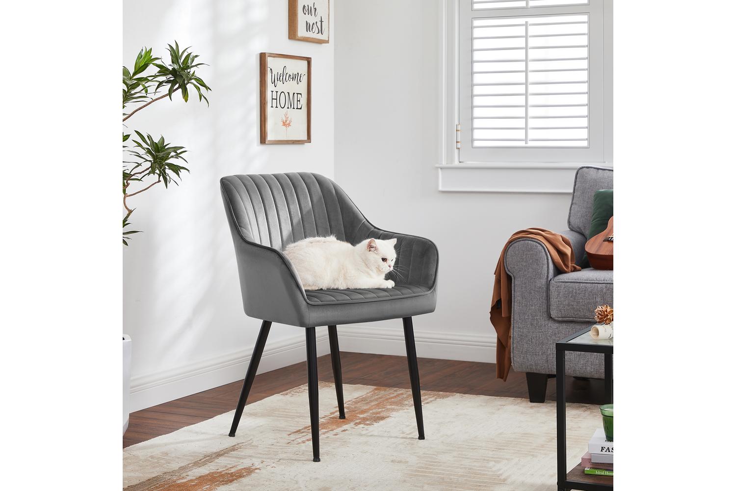 Upgrade your dining experience with the SONGMICS Dining Chair, a perfect blend of modern style, comfort, and durability. Designed for Irish homes that value both elegance and practicality, this light grey velvet dining chair is a standout addition to any dining room, kitchen, or even as a chic accent in your bedroom or hallway. Its contemporary quilted velvet upholstery and sleek black metal legs bring a sophisticated touch to your space, making every meal or gathering feel special.