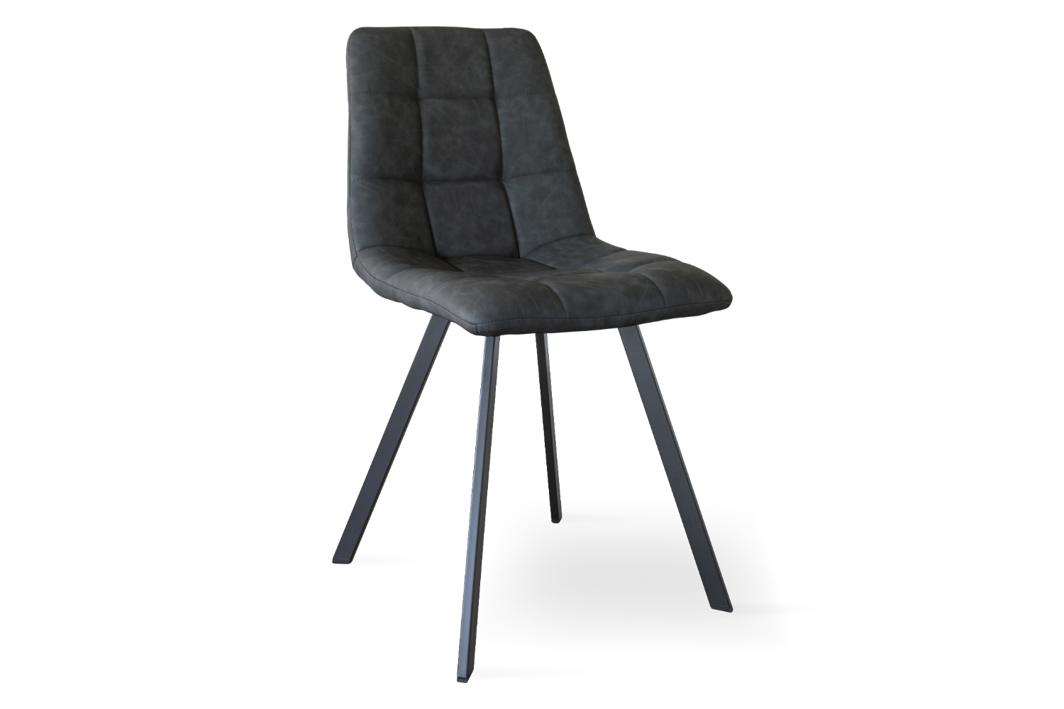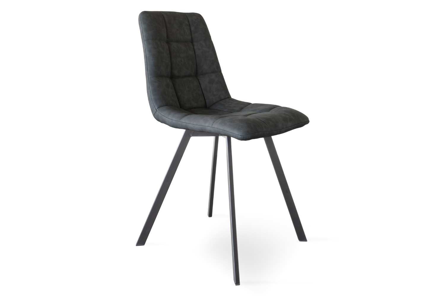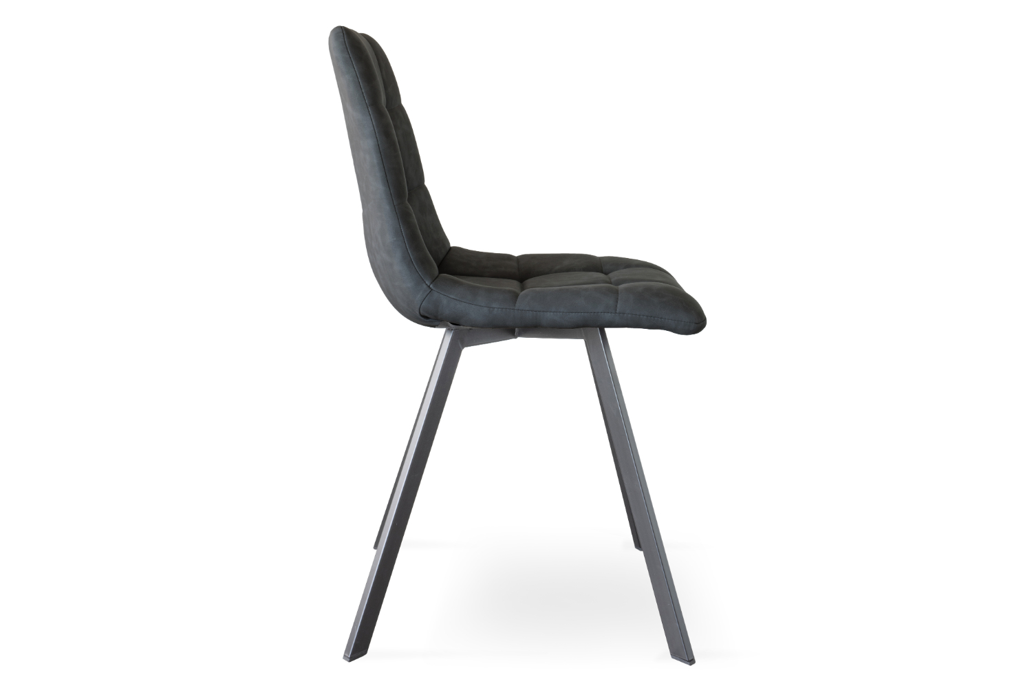 This contemporary chair sits atop slim black metal legs. While a sturdy frame is a good start, the chair’s carefully stitched and upholstered back and seating is another major attraction.