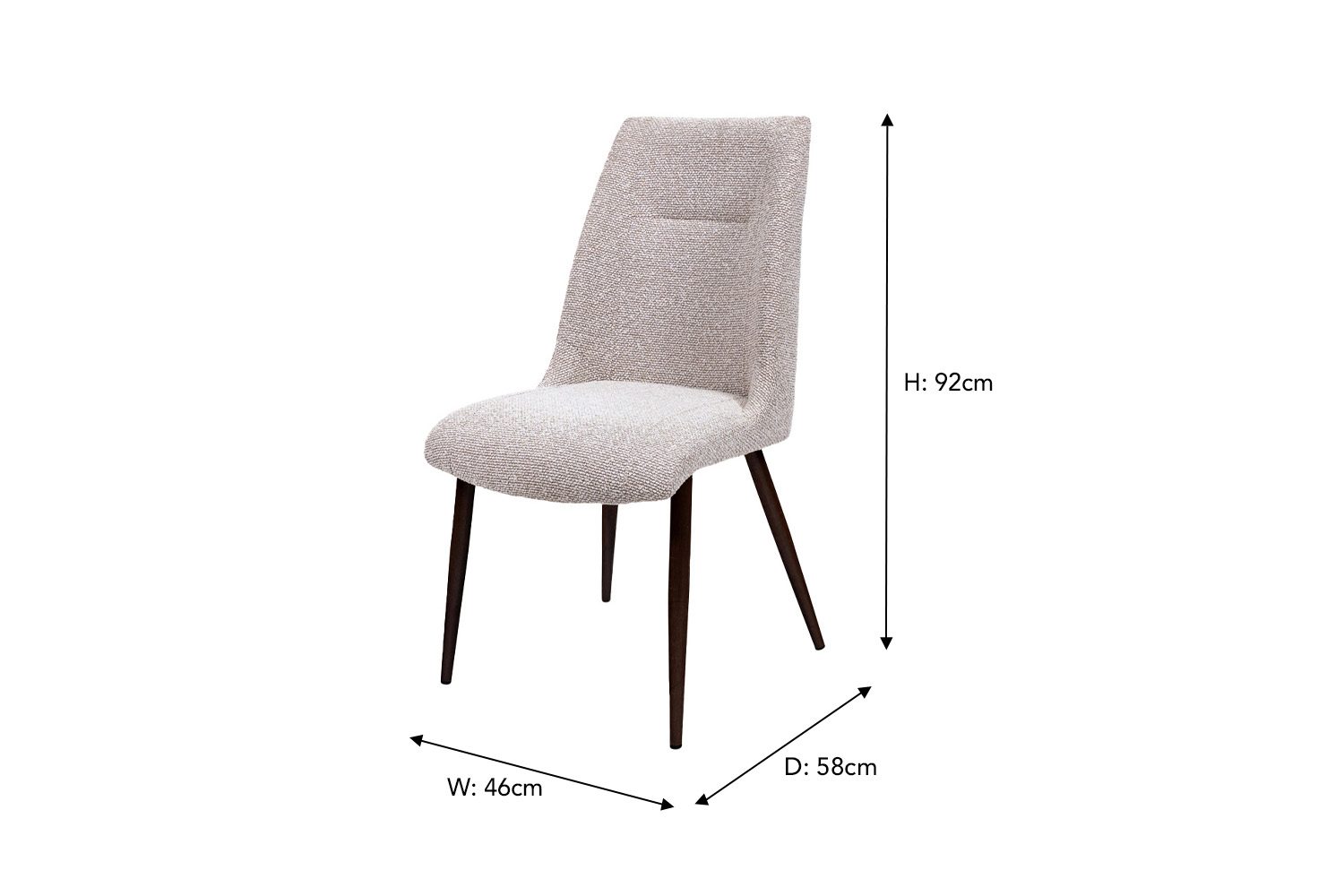 Add a touch of modern sophistication to your dining room with the exquisite Hilda high-back chair. Designed for both comfort and style, it features soft, natural yarn fabric upholstery that creates a warm, inviting atmosphere. The cushioned seat ensures long-lasting comfort, while the sleek steel legs in a deep brown hue provide sturdy support and complement the chair’s refined aesthetic. Its clean lines and timeless design make it the perfect addition to any contemporary or transitional dining setting.