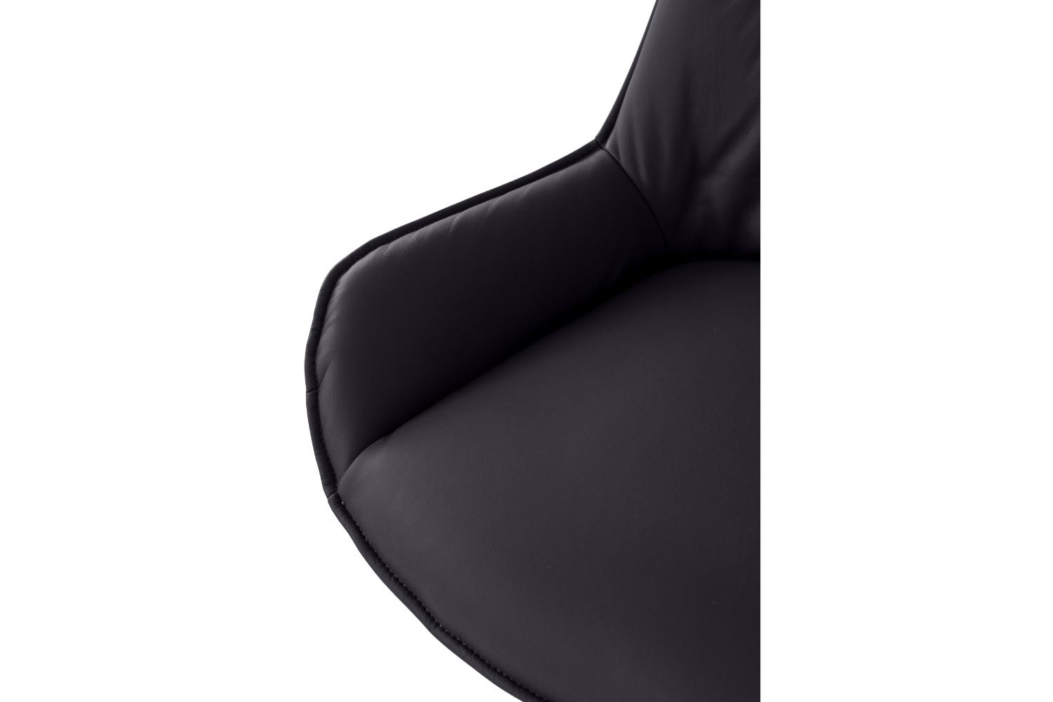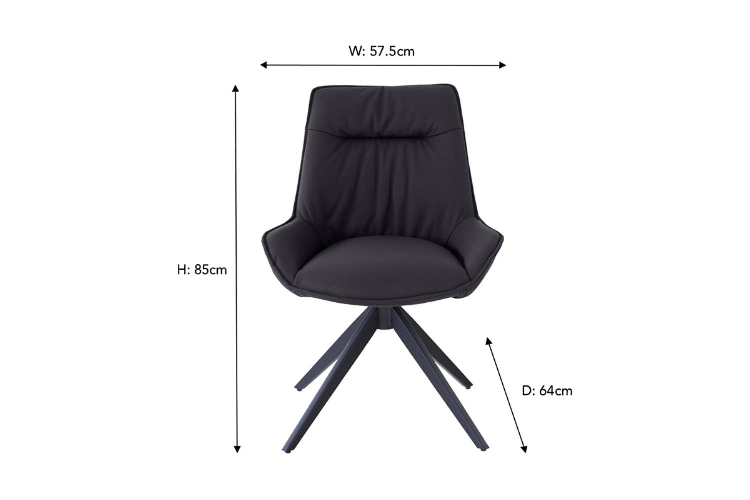 A stylish contemporary piece, the Kayleigh swivel chair would be a wonderful choice for your home and is perfect for both family meals and entertaining. With the ability to swivel a full 360 degrees, it offers both versatility and convenience, allowing you to effortlessly engage in conversation or reach for items around the table. The sleek black legs provide stability and a touch of sophistication, while the comfortable and stylish leather upholstery ensures a pleasant dining experience. Available in two incredible colours, perfect for any interior designs.
