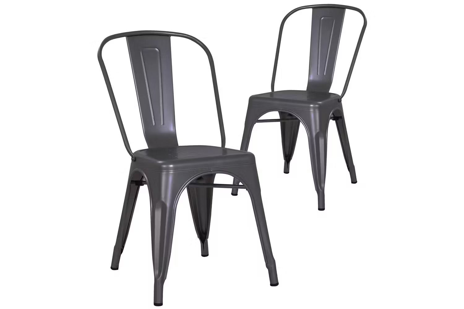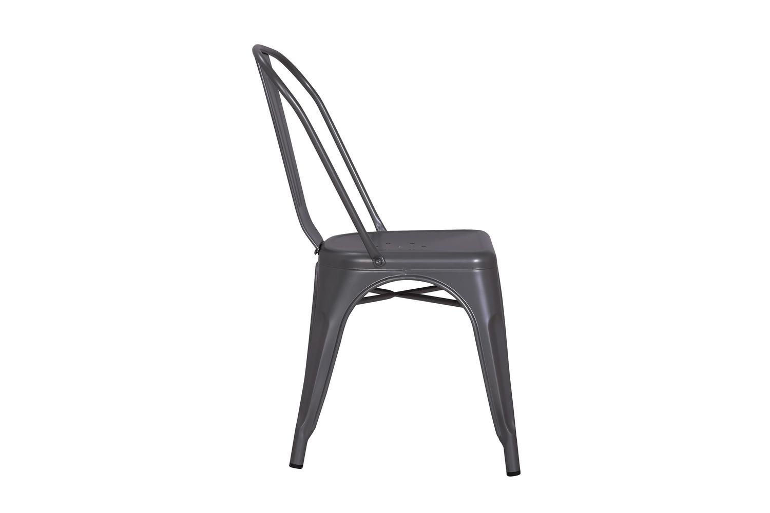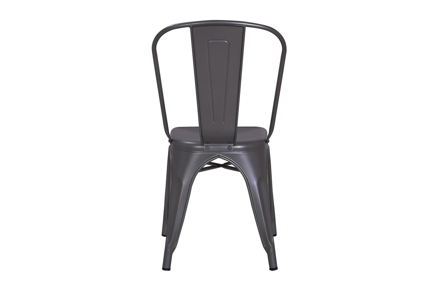POLLUX Metallic Grey dining chairs claim to be more than just pretty elements of your decor. Their robust powder coated steel build, along with high vertical slat back ensures the ultimate lounging experience.