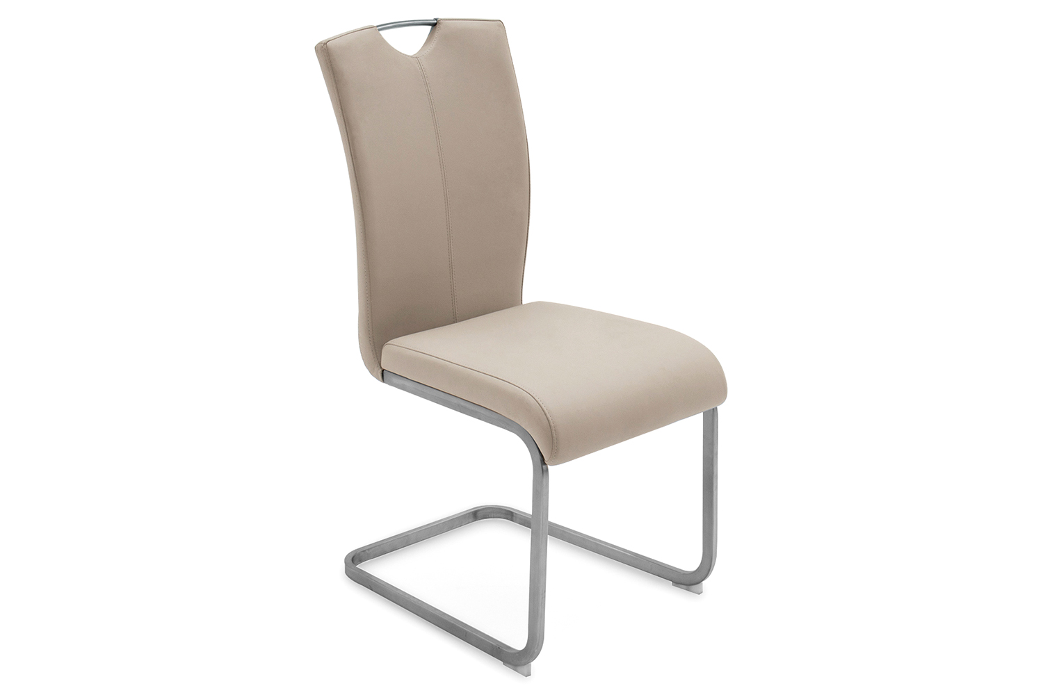 Elevate your dining experience with the Riyah dining chair, a beautiful blend of style and functionality. It boasts a soft, inviting shape and a trendsetting design that seamlessly complements various modern dining tables. The PU seat is not only easy to clean but also offers a soft, cushioned feel that ensures comfort without compromising on style. Its sleek brushed metal legs offer a polished, industrial look, while the high back provides exceptional support and comfort.