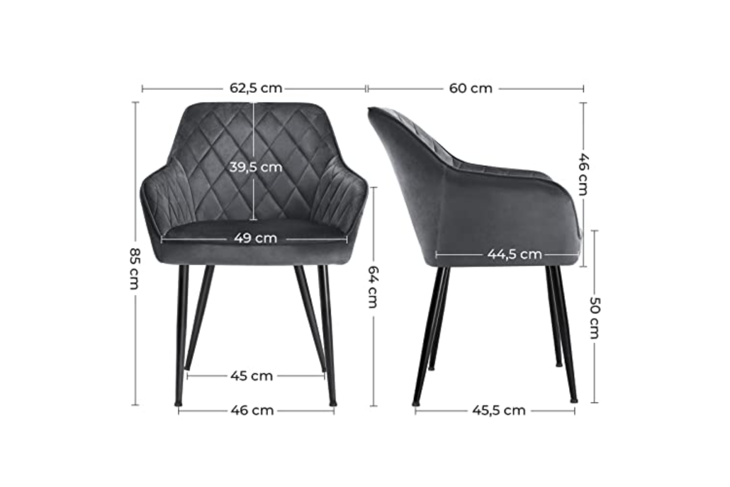 These padded chairs are a decorative addition to your home. Soft lines, smooth velvet with diamond pattern and elegant metal legs, these chairs add a delicate touch to your home.