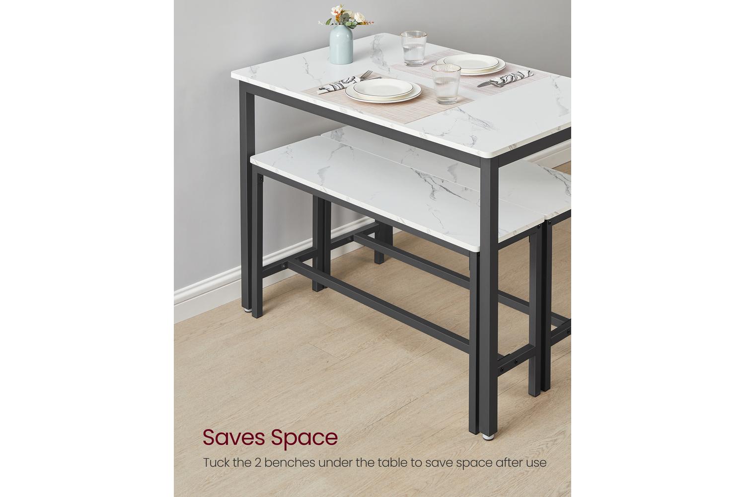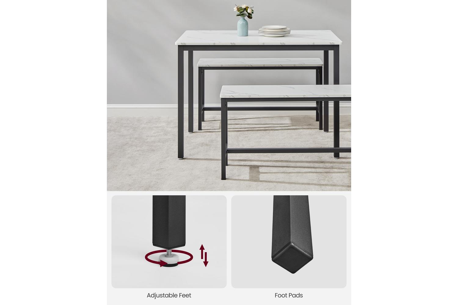 Crafted with high-quality particleboard and a sturdy steel frame, the VASAGLE Dining Table Set is built to last. The spacious tabletop offers ample room for dishes, drinks, and décor, while the two matching benches provide comfortable seating for up to four people. The compact design is ideal for Irish homes, fitting neatly into kitchens, dining areas, or open-plan living spaces without taking up too much room. The benches slide easily under the table when not in use, helping you maximise your floor space and keep your home tidy.