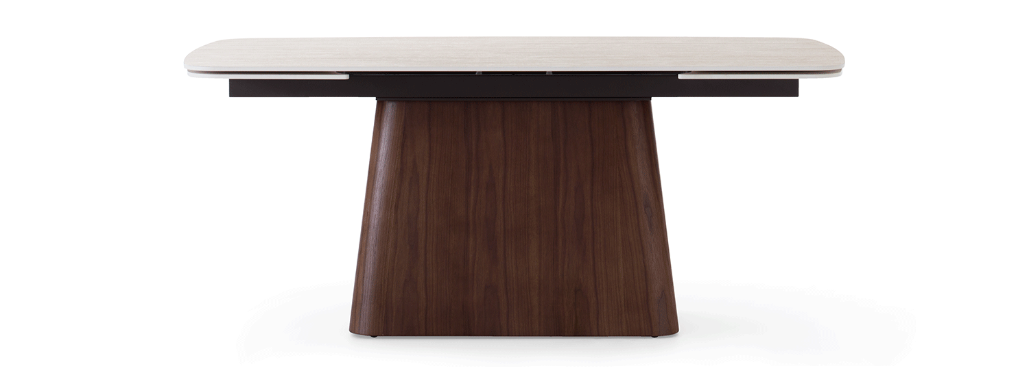 Suitably sturdy yet smooth, this range has good looks that won’t go unnoticed. Skilfully crafted using a sintered stone top, this extending dining table is heat- and scratch-resistant as well as waterproof and stainproof ensuring even in life’s messier moments this table will continue to look and feel great. It rests upon a stunning wooden pedestal base with a walnut veneer finish that showcases a stunning natural wood grain, adding a touch of warmth and character to any room. Complete with an extending mechanism allowing for more space at mealtimes and perfect for hosting dinner parties for guests.