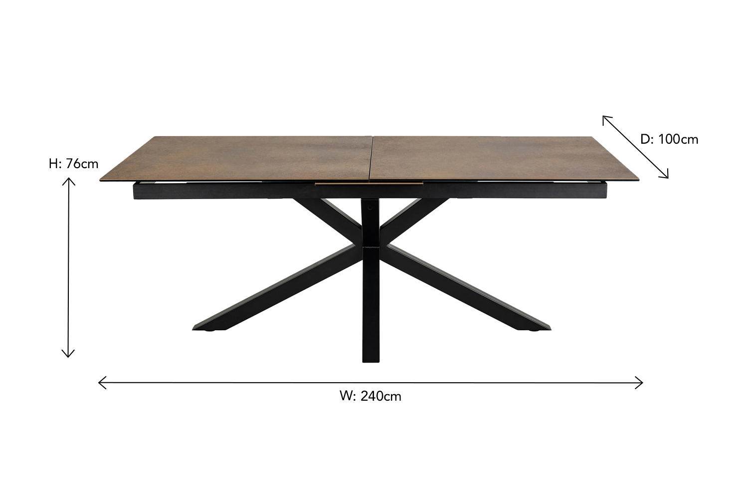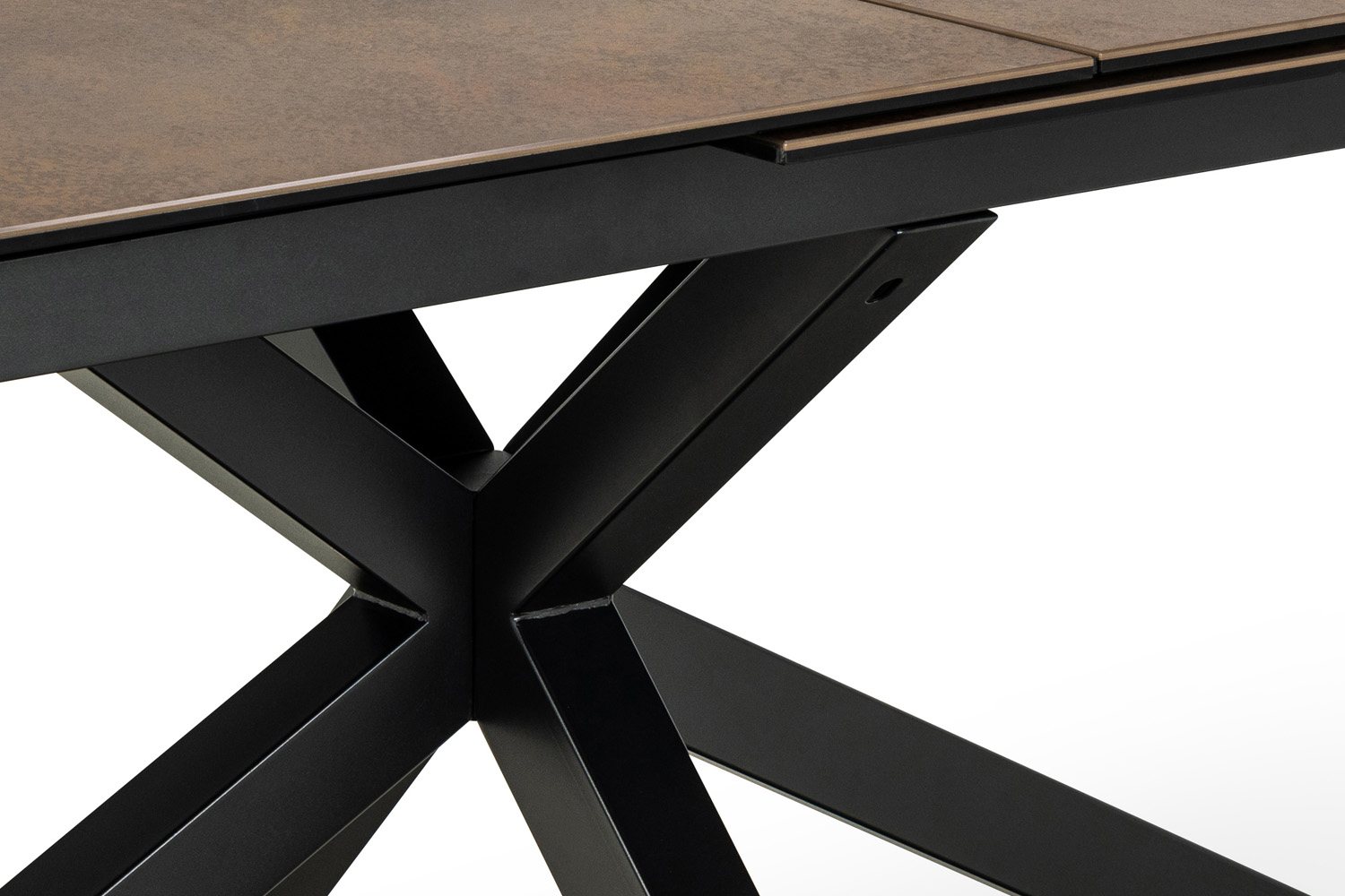 This table allows for intimate dinner settings and opens up with a hidden synchronous extension to allow for larger dinner parties. The ceramic tabletop both looks great and is super easy to clean and maintain. This exquisite top rests upon a similarly impressive x-frame black metal base. The overall look is one of contemporary cool that combines to create this modern masterpiece.