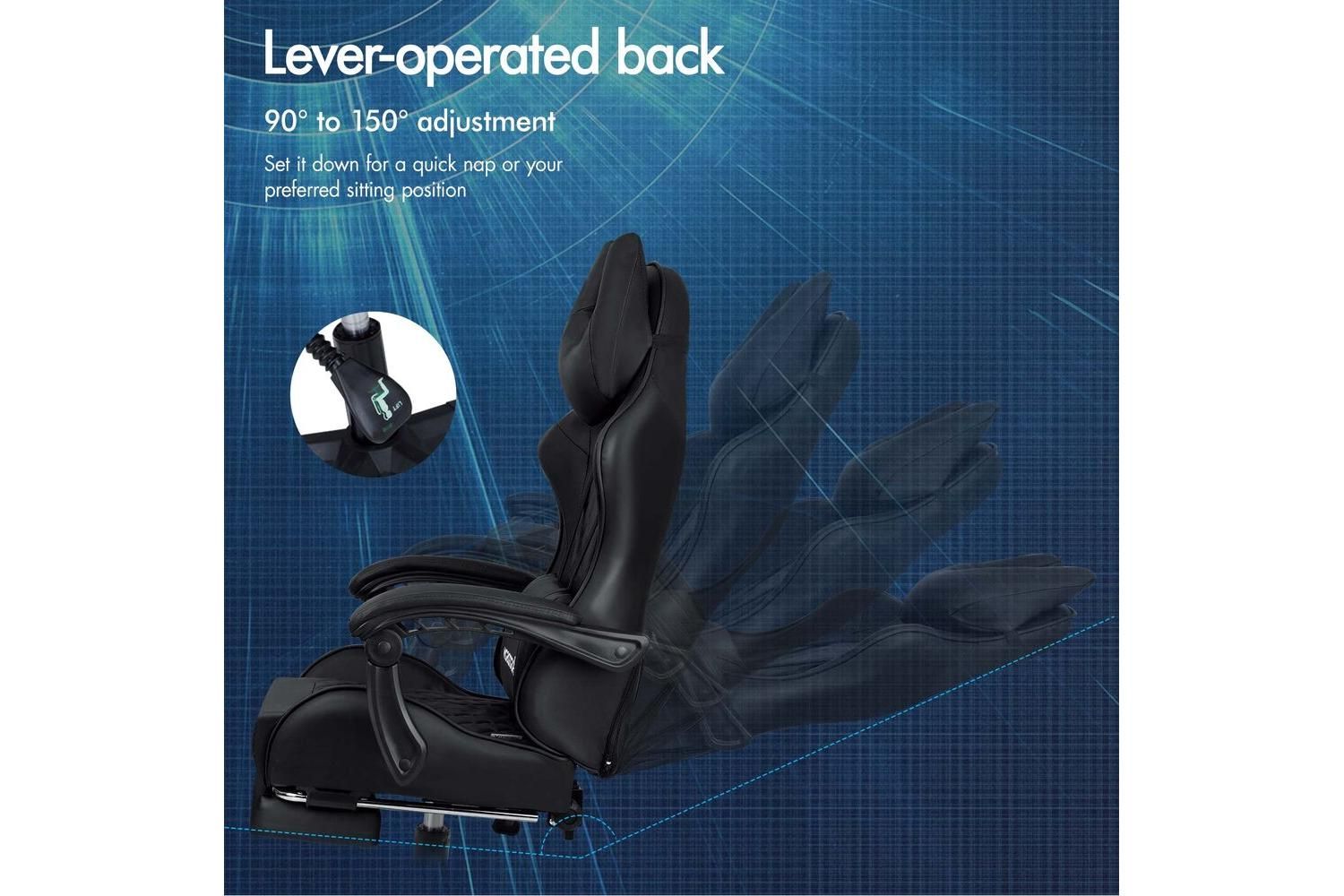 Engineered for comfort, the Alfordson Gaming Chair features an S-curve design with a wider and taller backrest, providing exceptional support and reducing pressure on your back and shoulders. The integrated footrest and extra-large lumbar cushion ensure you can relax, recline, or power through intense gaming sessions with ease. Whether you are working, studying, or gaming, this chair adapts to your needs with up to 150-degree tilt adjustment and a removable, height-adjustable U-shape headrest for personalised comfort.