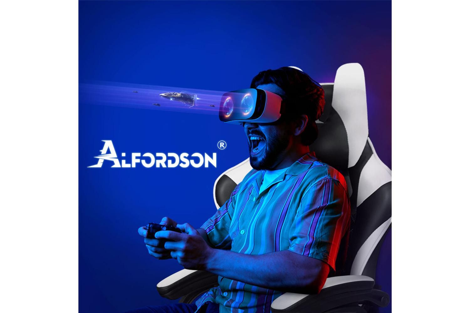 Alfordson Gaming Office Chair | Faux Leather | White | High-Back