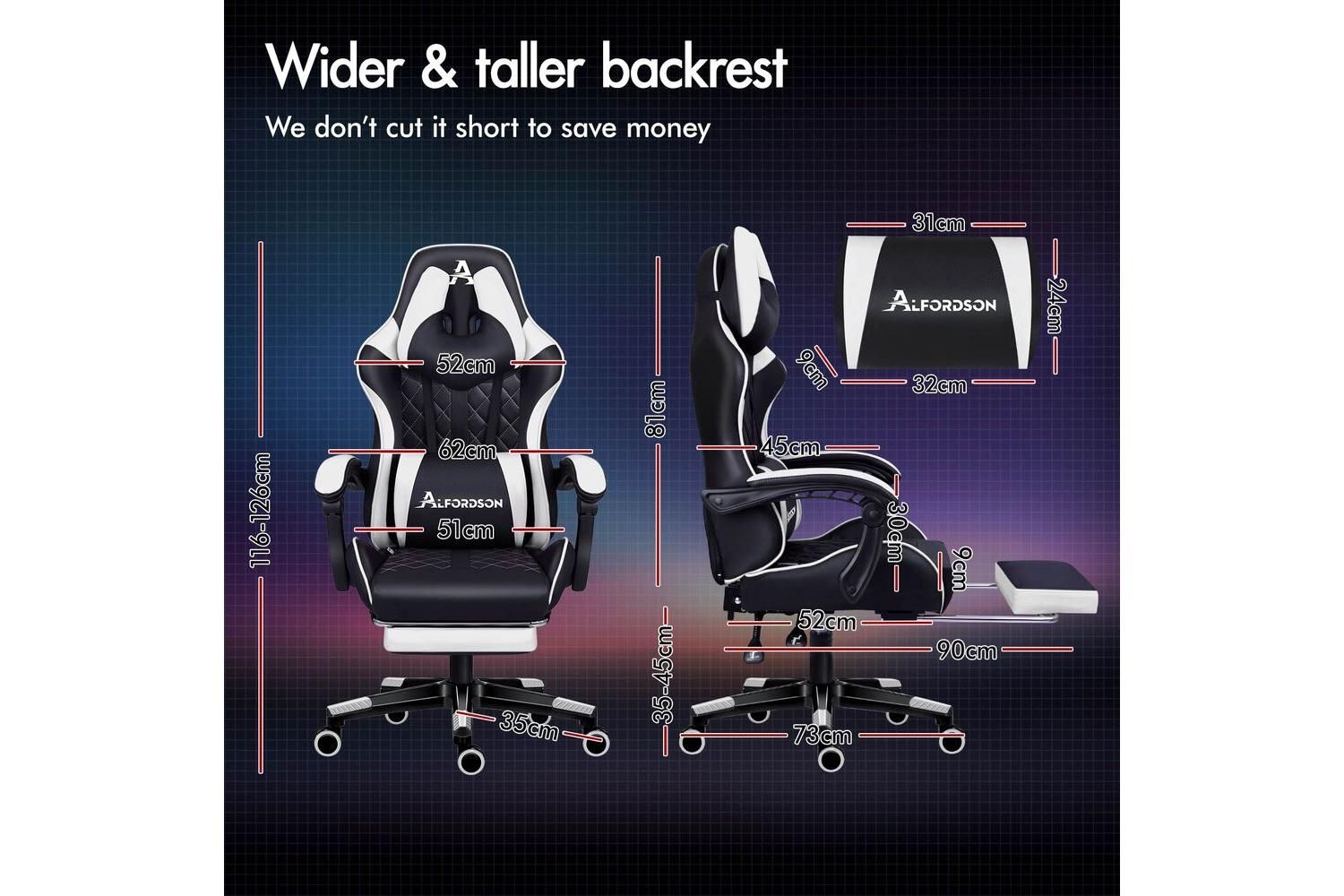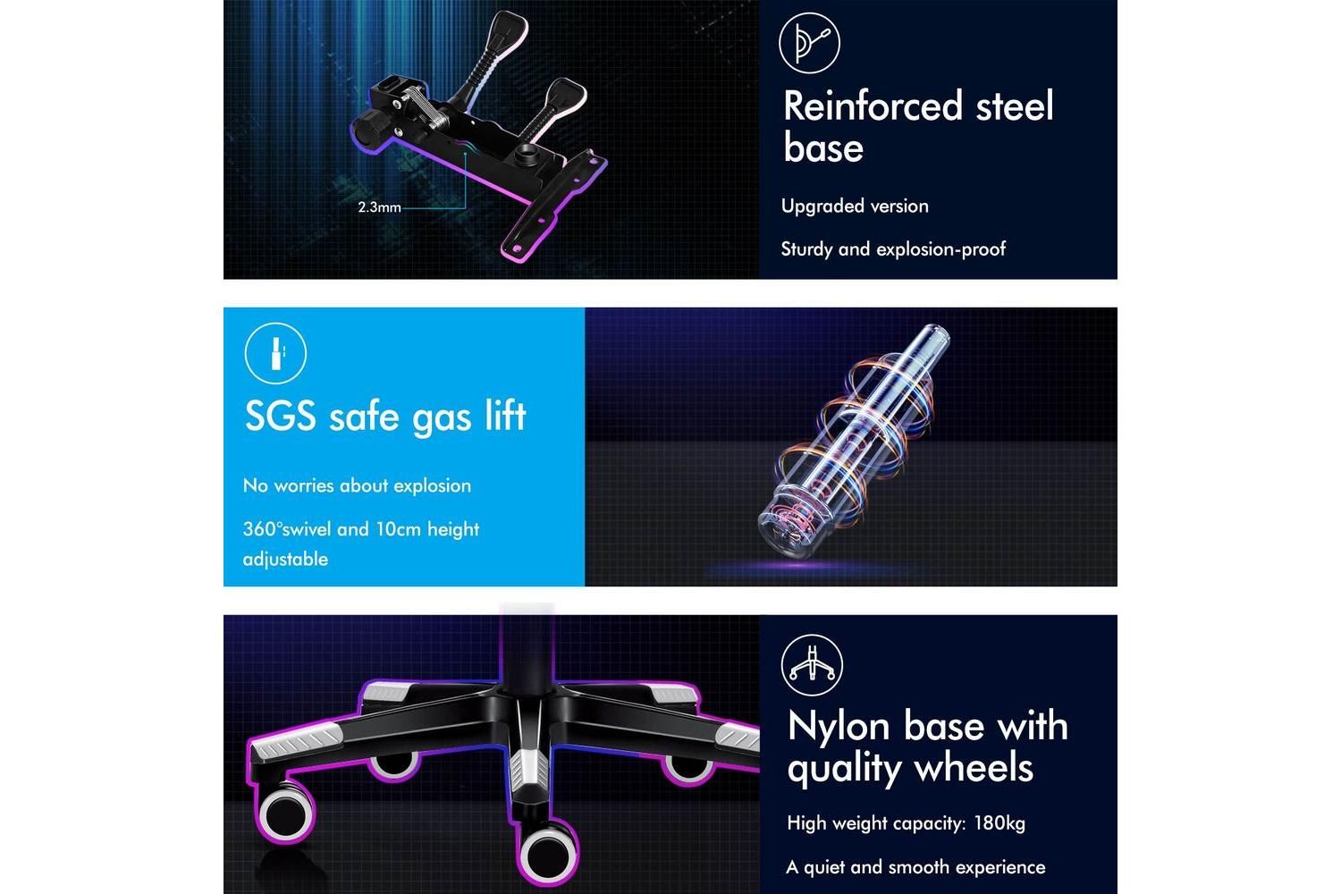 With a high weight capacity of up to 180kg, this chair is built to accommodate a wide range of users. The Intertek supreme PU leather is both stylish and easy to maintain, while the SGS gas-lift and TUV caster wheels ensure safety and reliability. The Alfordson Gaming Office Chair is the perfect blend of ergonomic design, robust construction, and modern aesthetics, making it a top choice for Irish gamers and professionals alike.