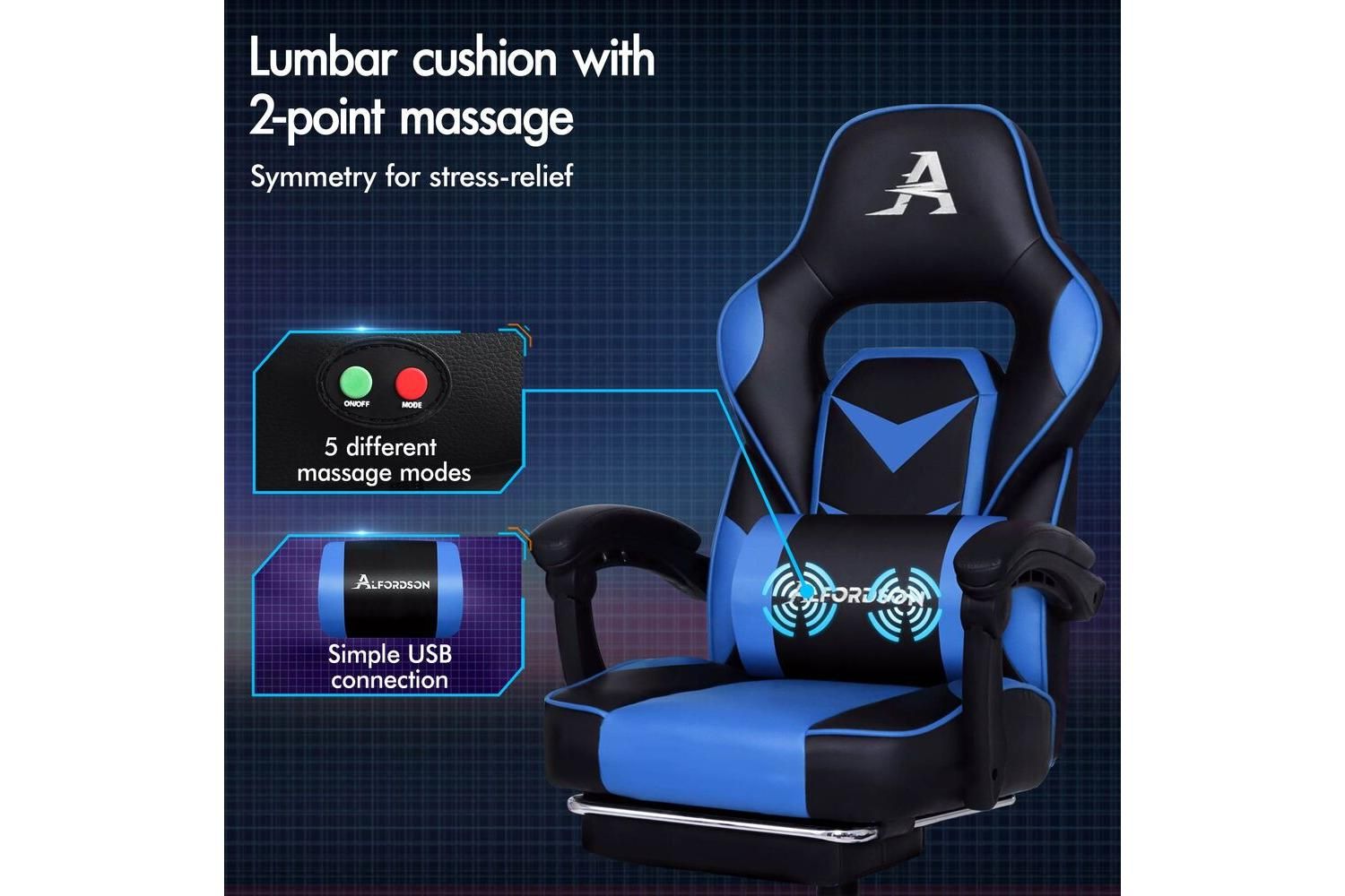 - Removable extra-large lumbar cushion with massage points