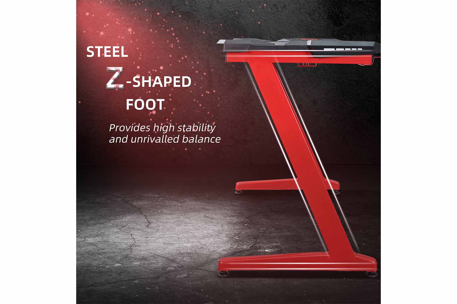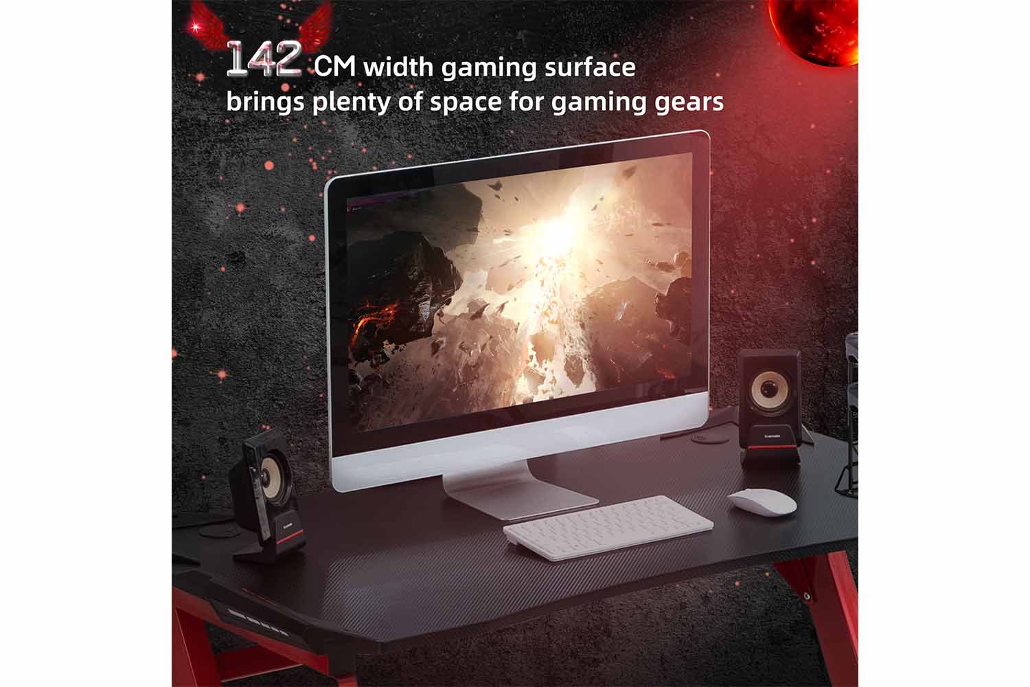 - Large table top allows plenty of room for monitors and other gaming equipment
