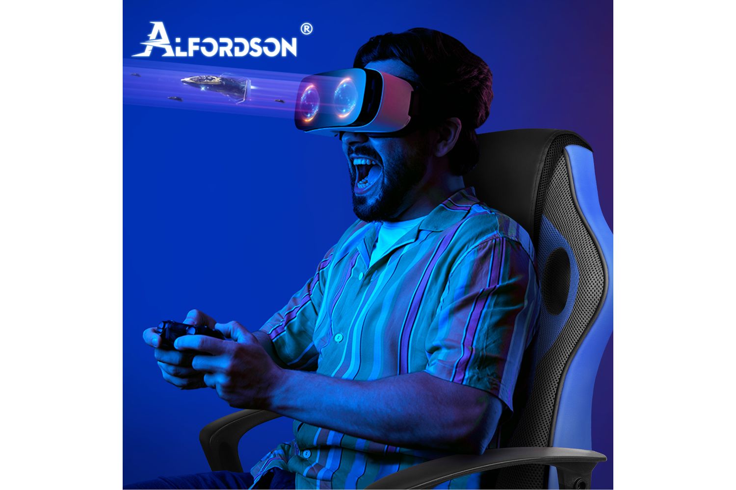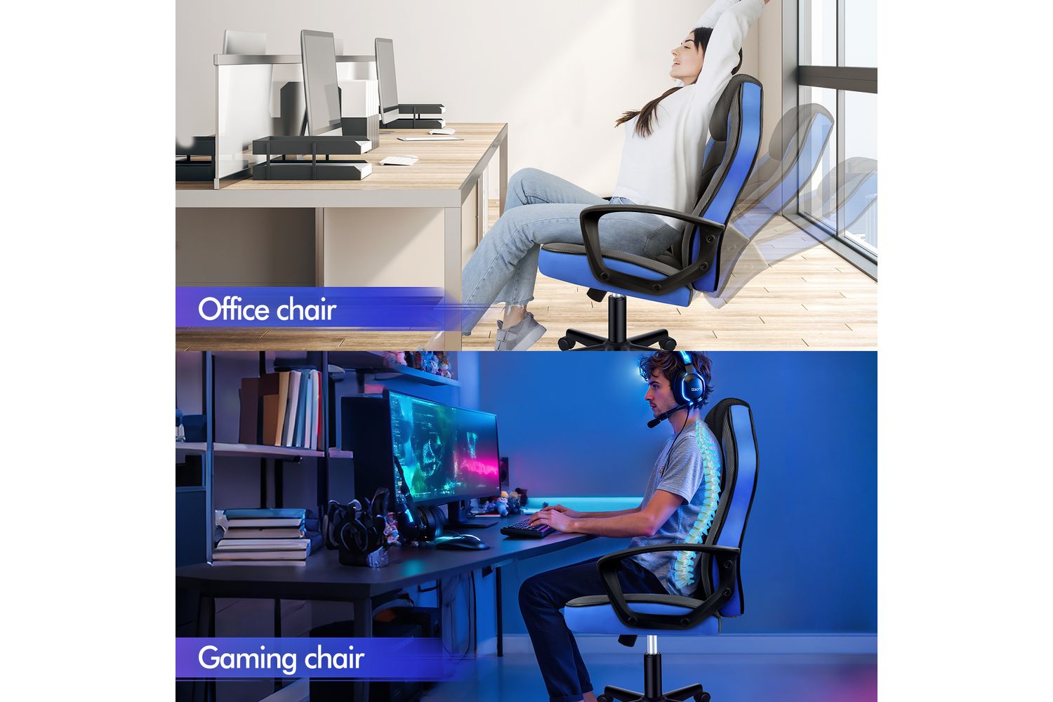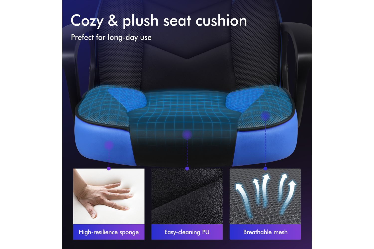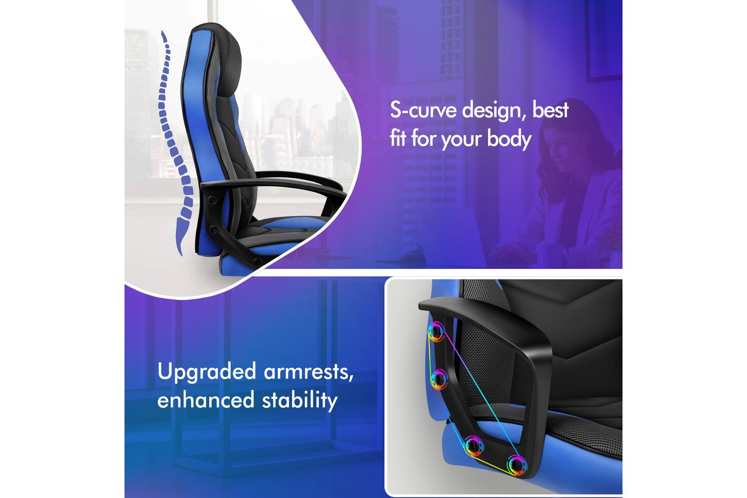 Alfordson Computer Gaming Desk Chair | Ergonomic PU Leather Mesh | Blue