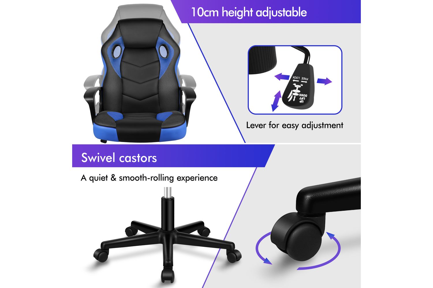 Upgrade your workspace or gaming setup with the Alfordson Computer Gaming Desk Chair, expertly crafted for those who demand both comfort and style. Designed with the Irish home and office in mind, this ergonomic chair blends premium PU leather with breathable mesh fabric, ensuring you stay cool and supported through long workdays or marathon gaming sessions. The striking blue finish adds a modern touch, making it a standout addition to any room.