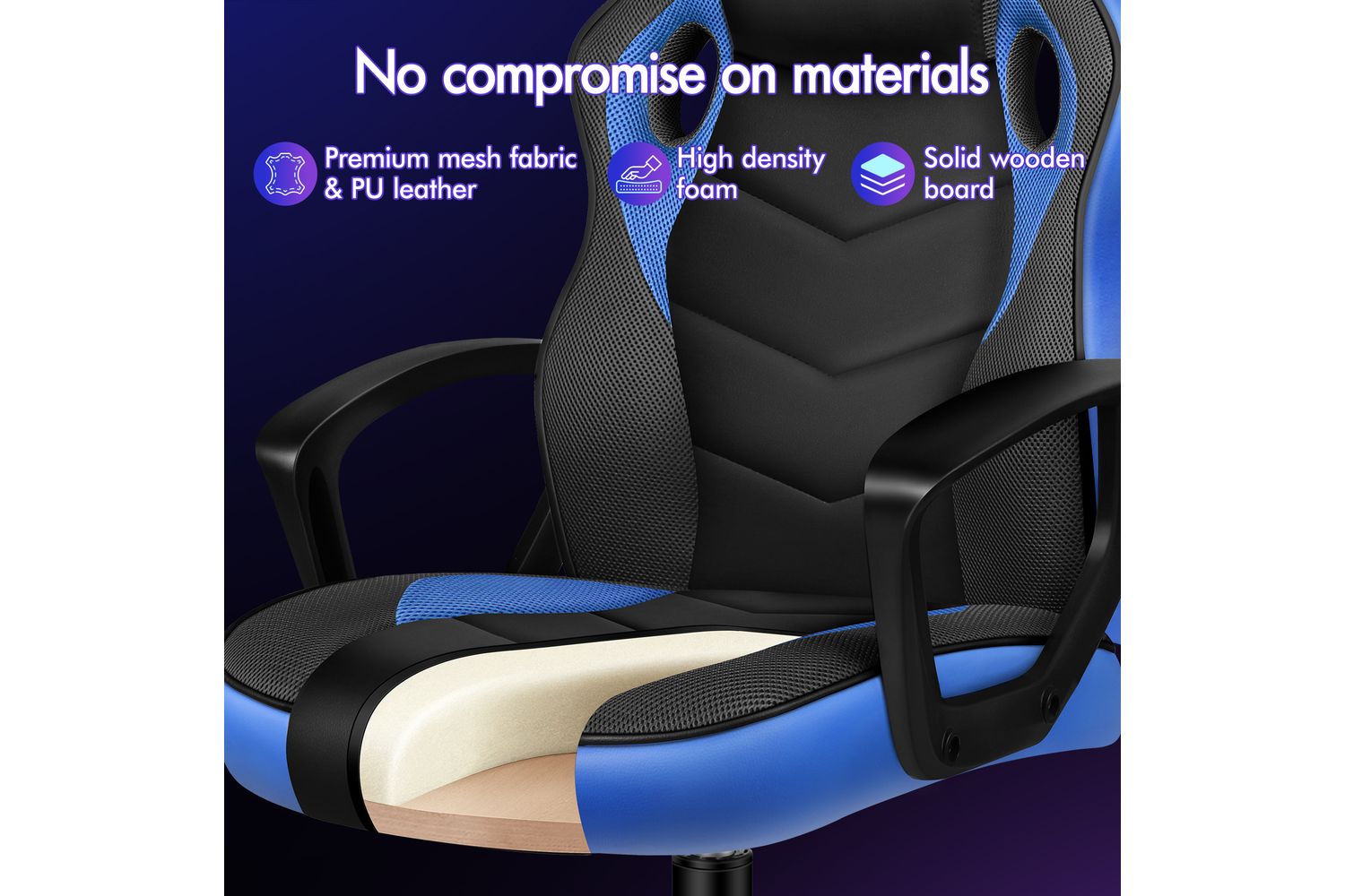 - Premium PU leather and breathable mesh upholstery