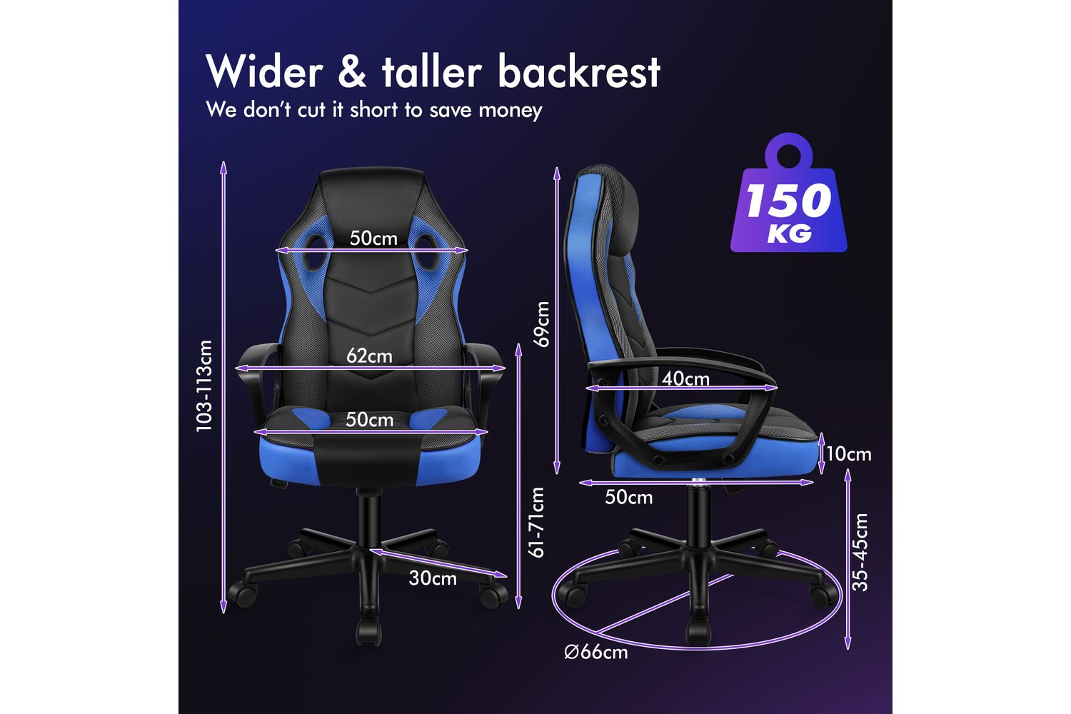 - High weight capacity: up to 150kg
