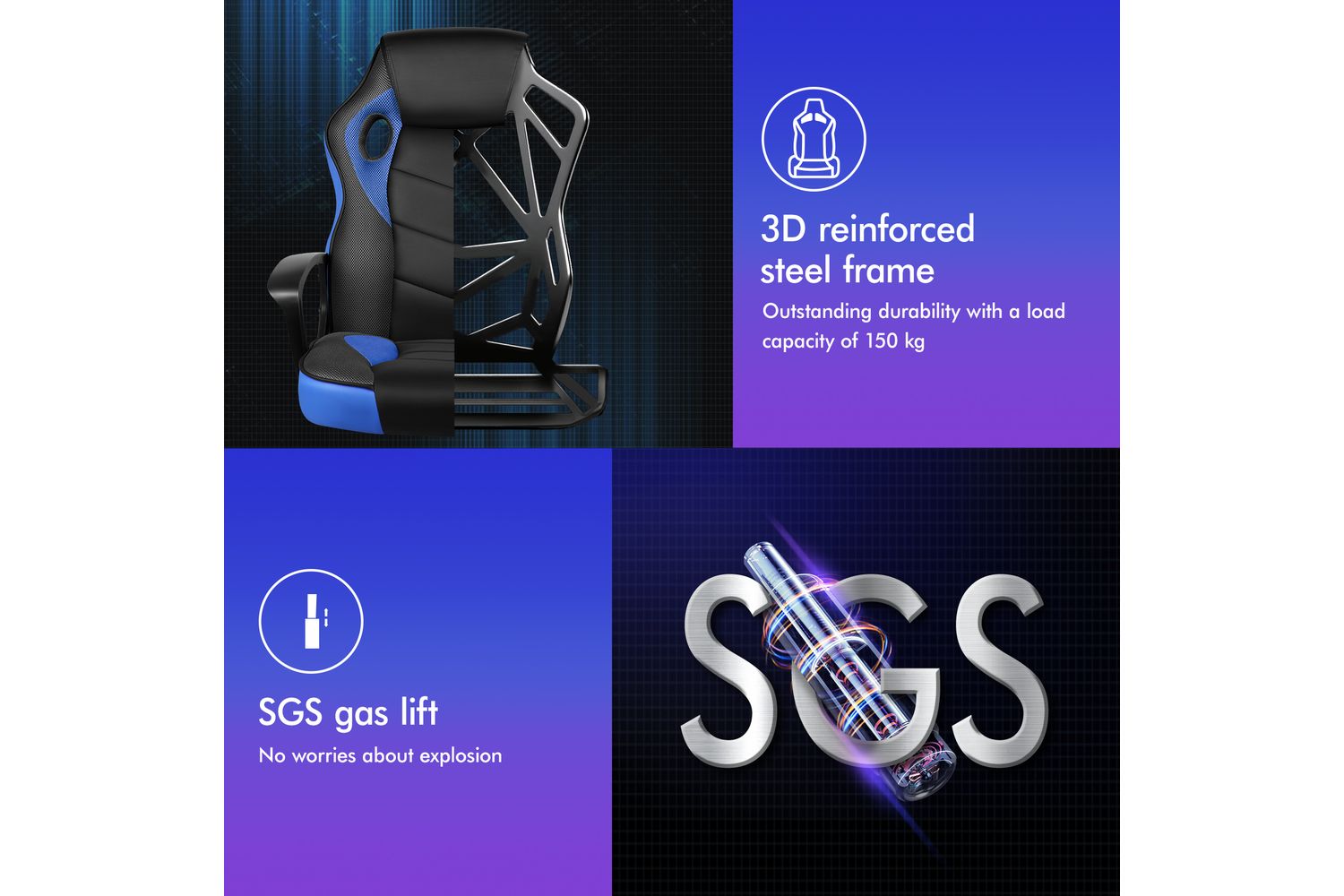 - SGS-approved gas lift for safe height adjustment