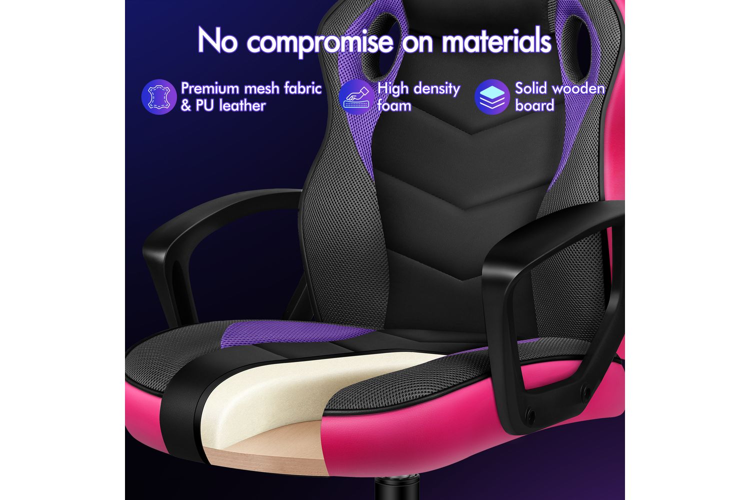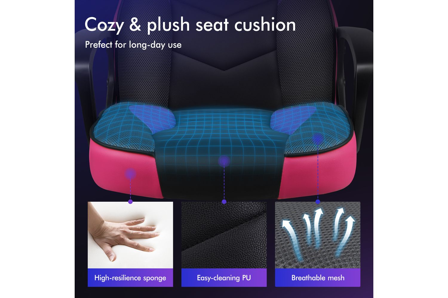 - Breathable mesh and premium PU leather upholstery