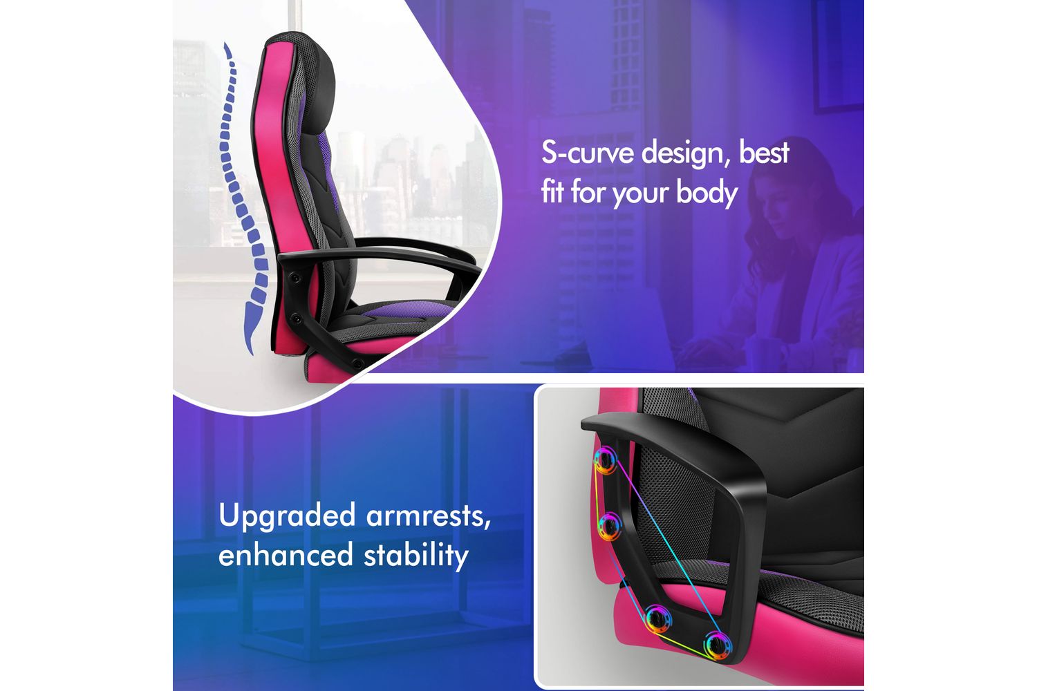Upgrade your workspace or gaming area with the Alfordson Computer Gaming Desk Chair and experience the perfect balance of ergonomic support, premium materials, and contemporary style. Order today and enjoy a new level of comfort and productivity at your desk.
