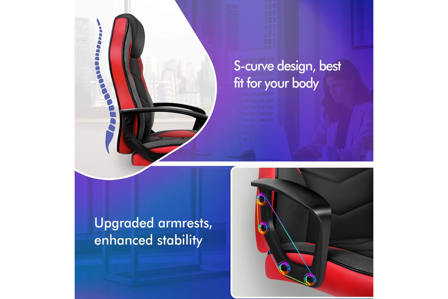 Alfordson Computer Gaming Desk Chair | Ergonomic PU Leather Mesh | Red