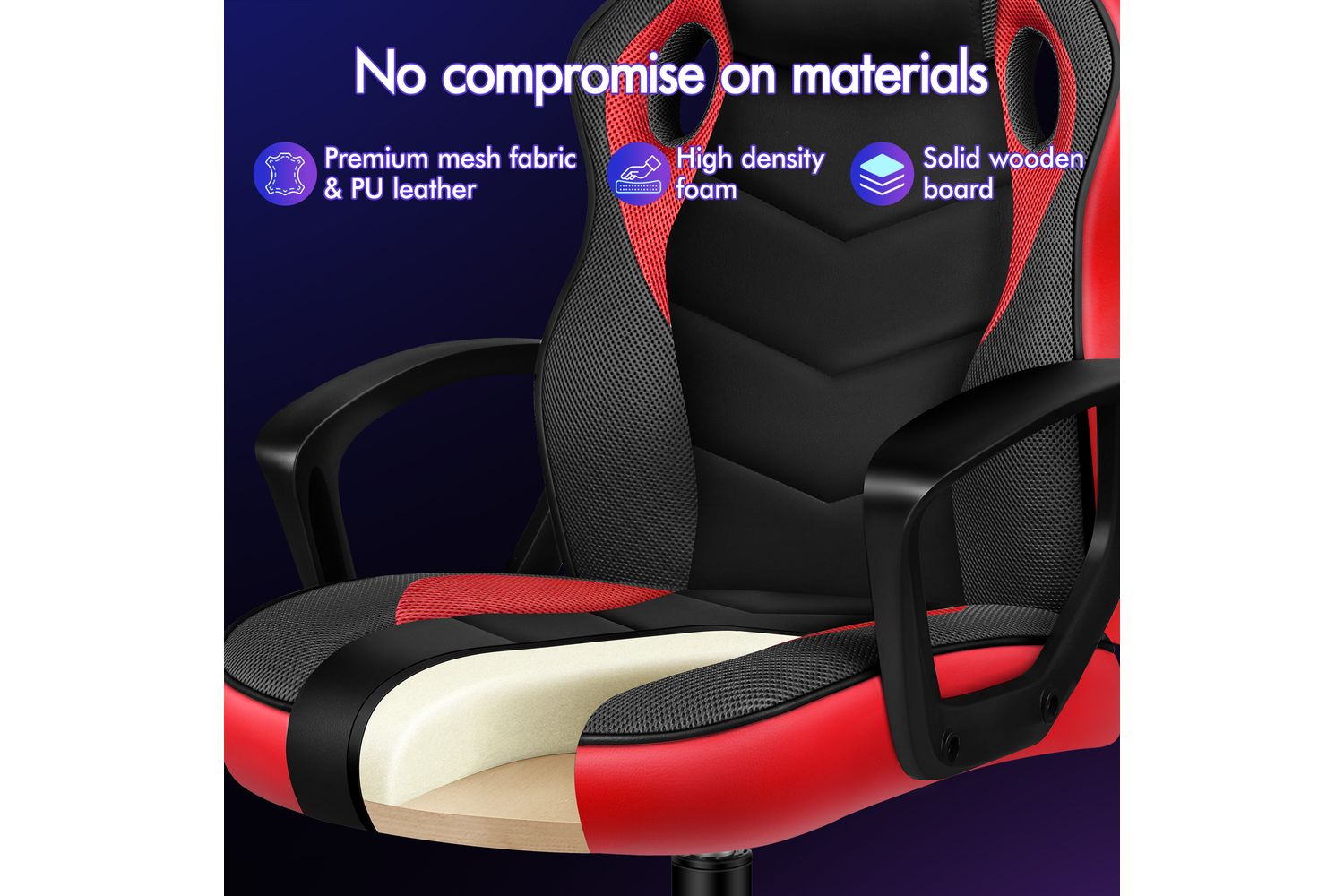 - Premium PU leather and breathable mesh upholstery