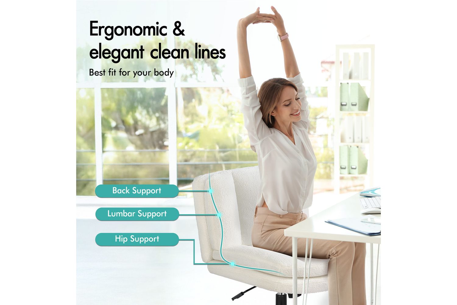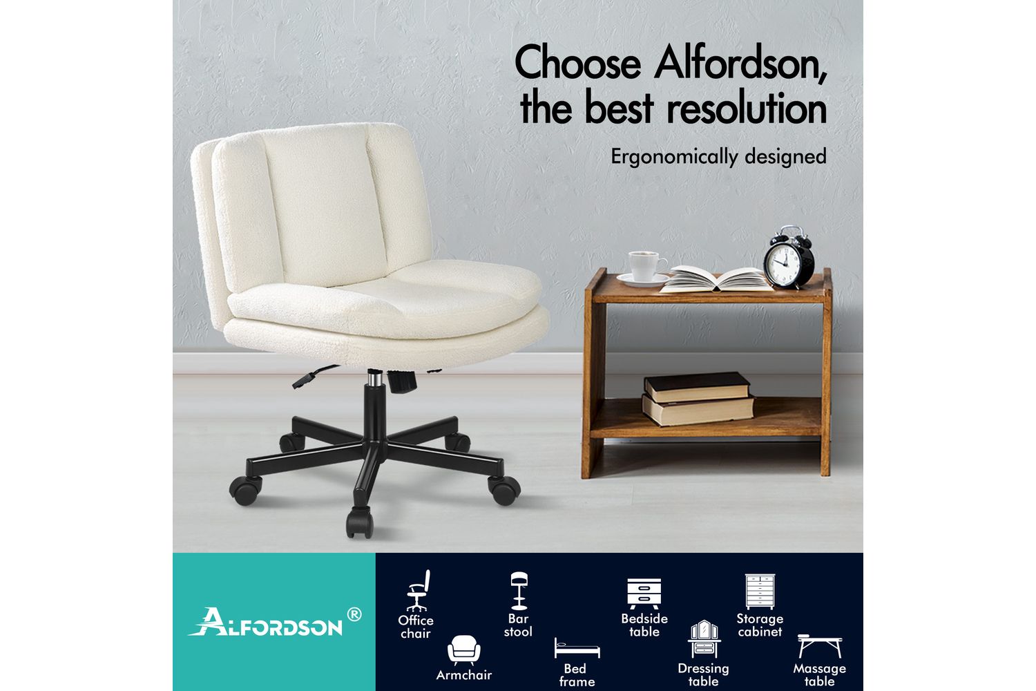 Alfordson Cross Legged Office Chair | Boucle Fabric | Wide Seat | White