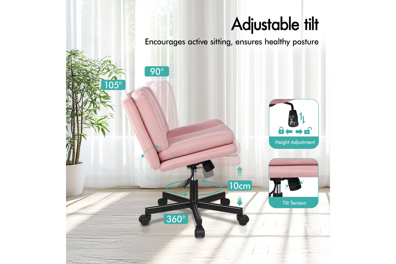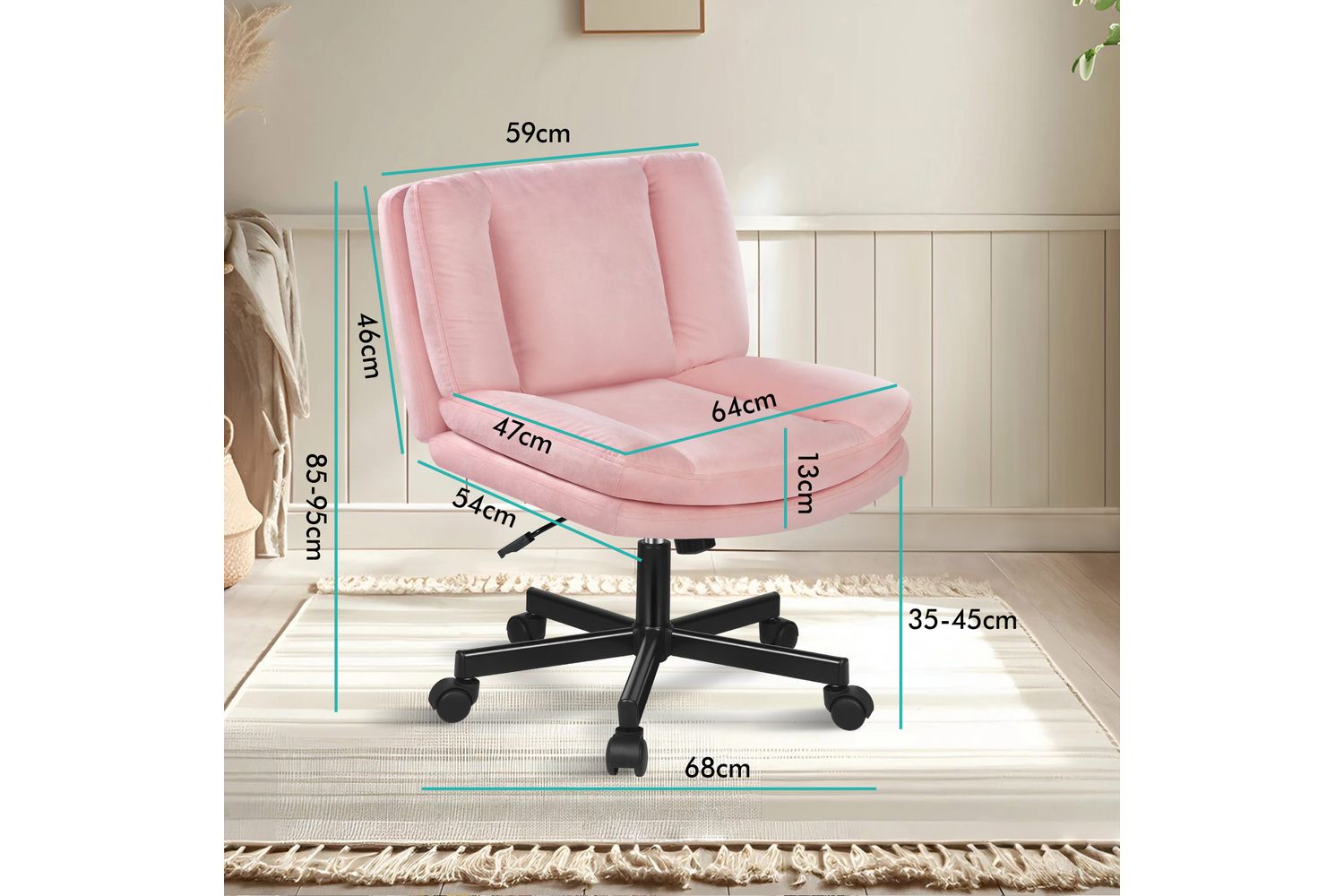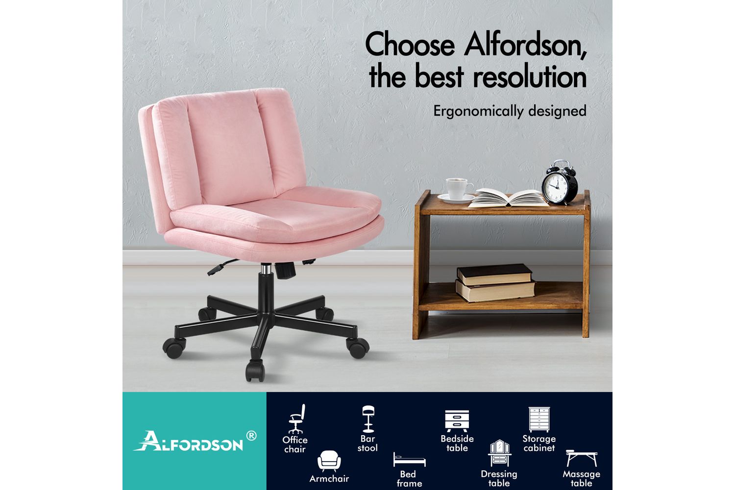 Alfordson Cross Legged Office Chair | Velvet Fabric | Wide Seat | Pink