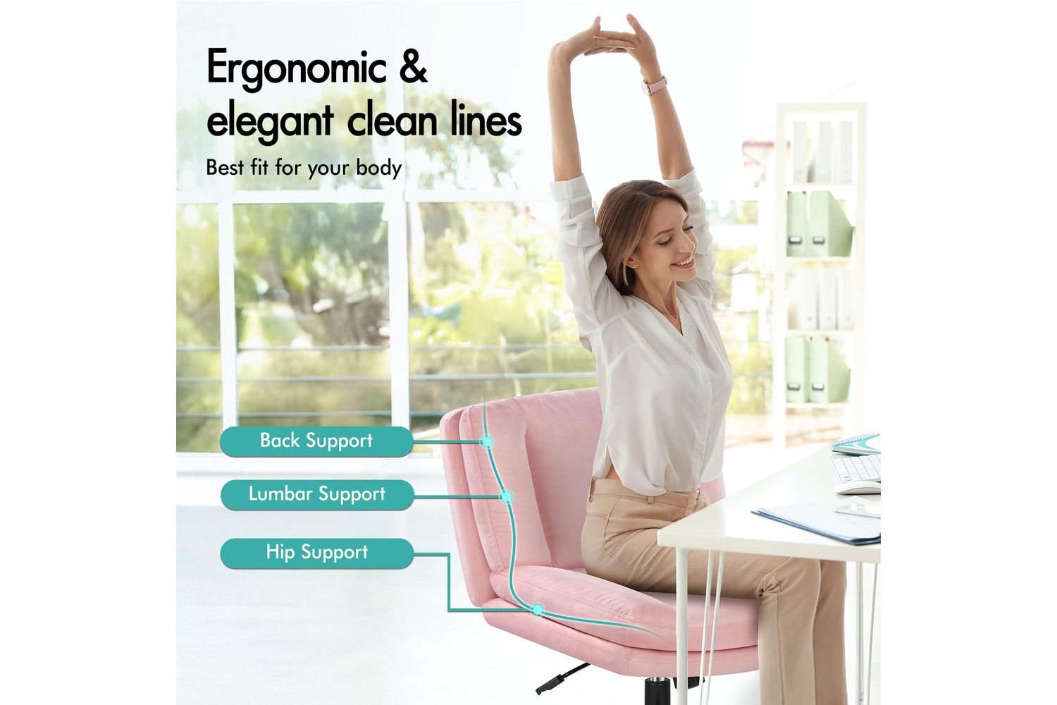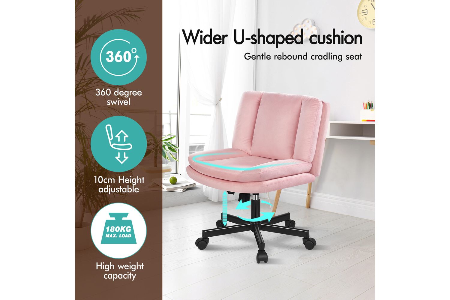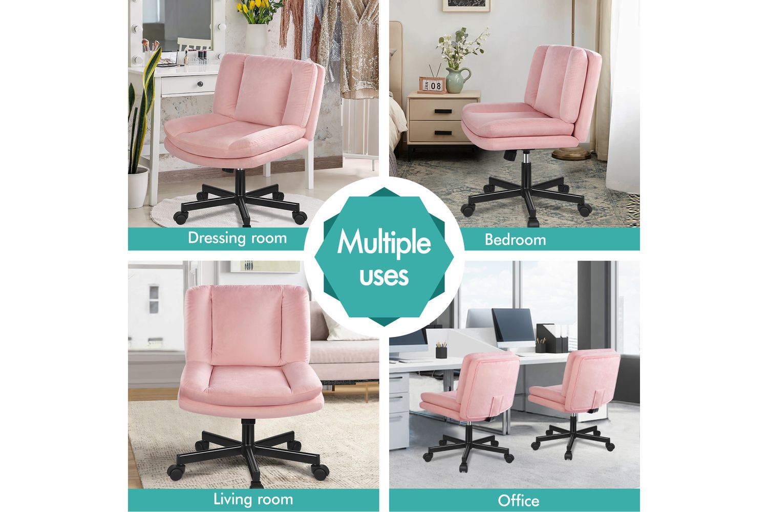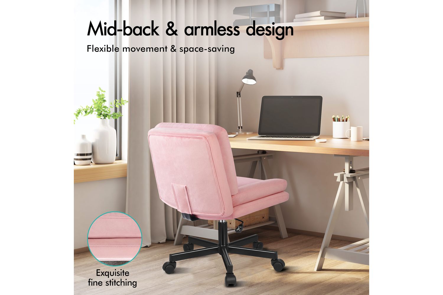 Alfordson Cross Legged Office Chair | Velvet Fabric | Wide Seat | Pink