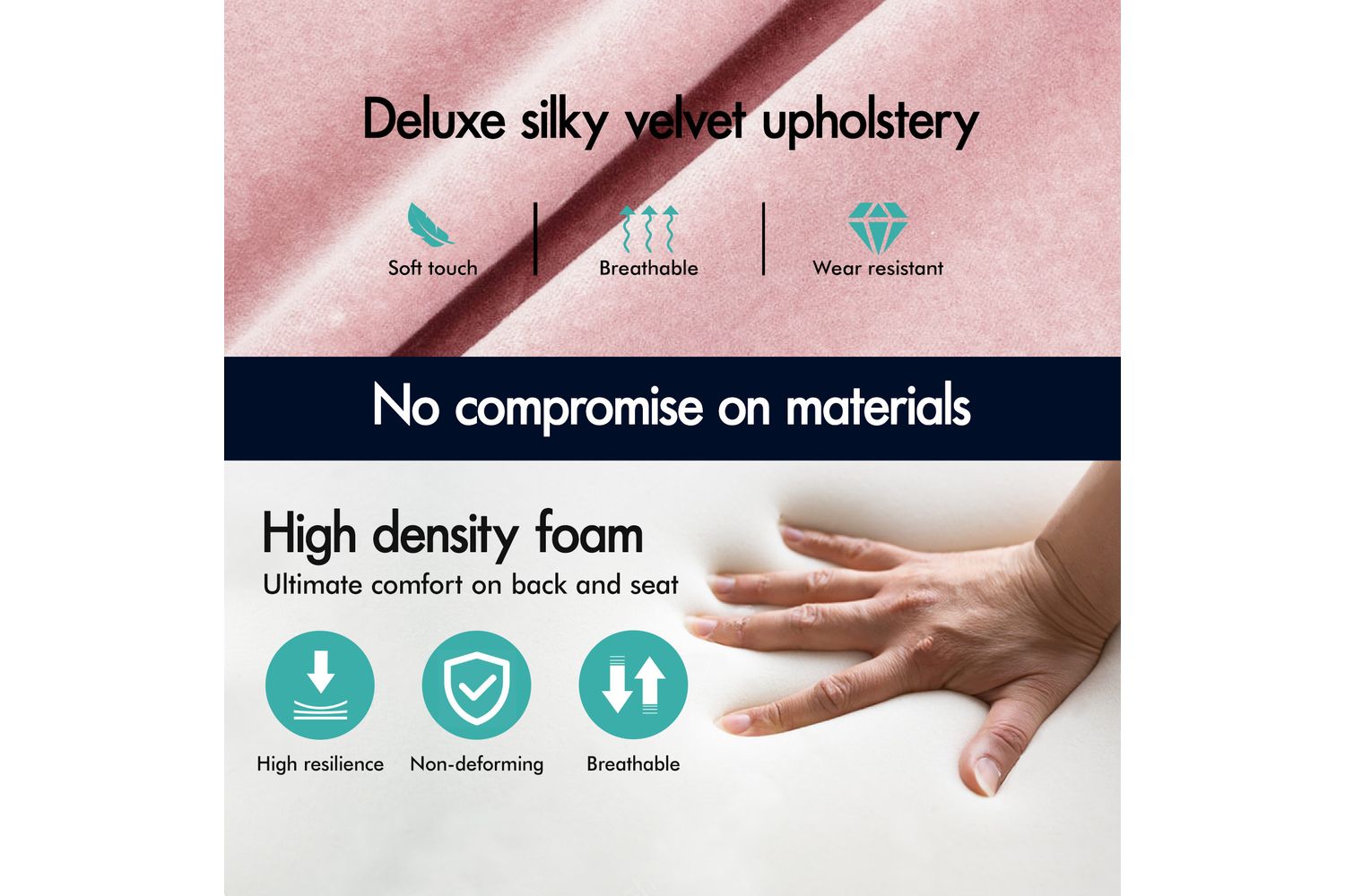 - Luxurious pink velvet fabric upholstery for a soft, breathable feel