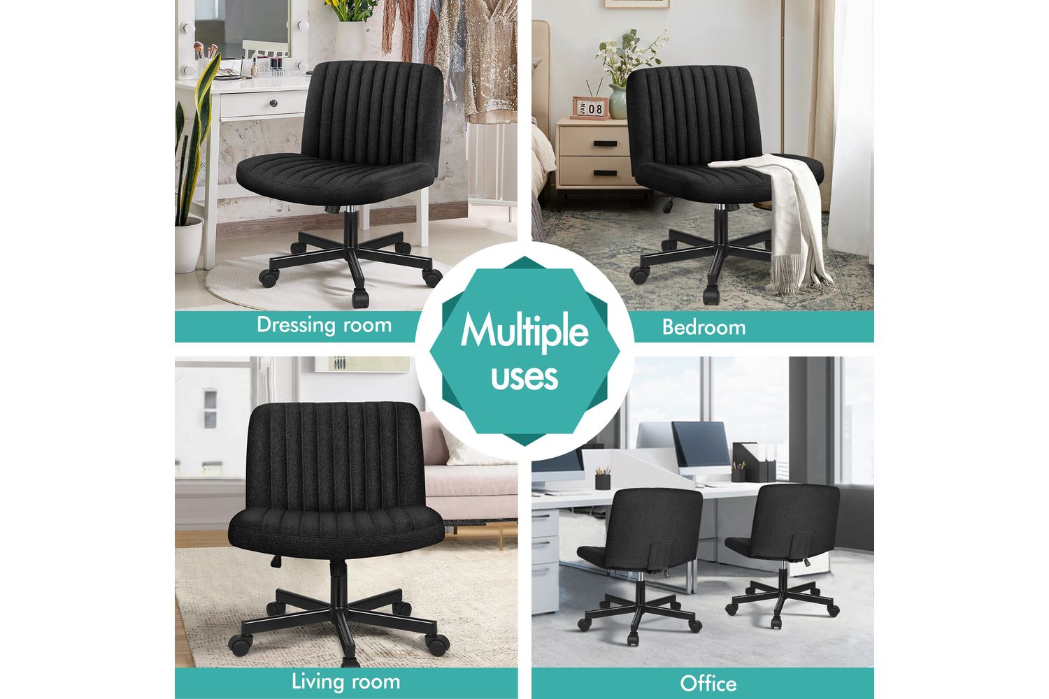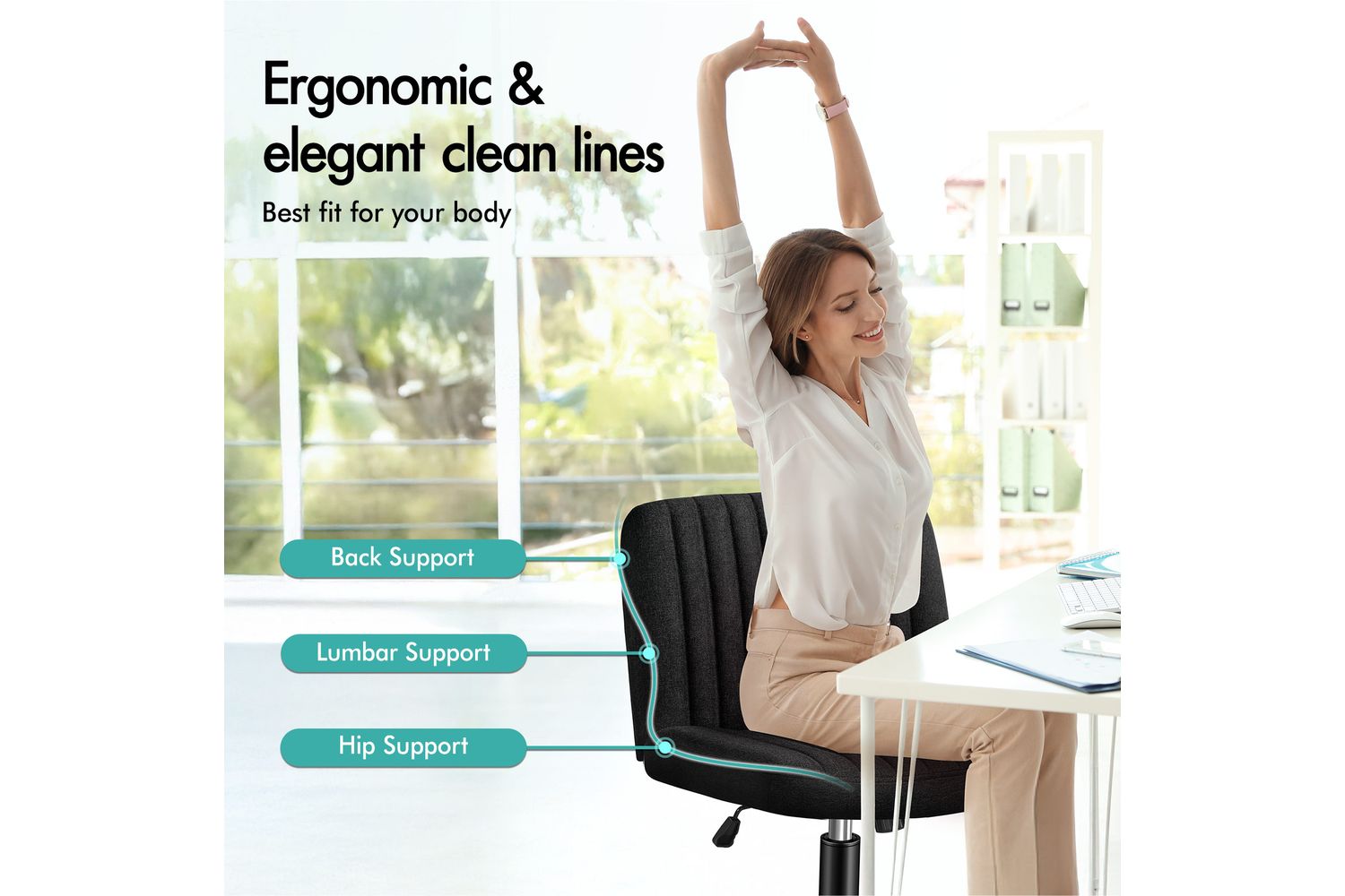 - Mid-back, armless design ideal for small spaces