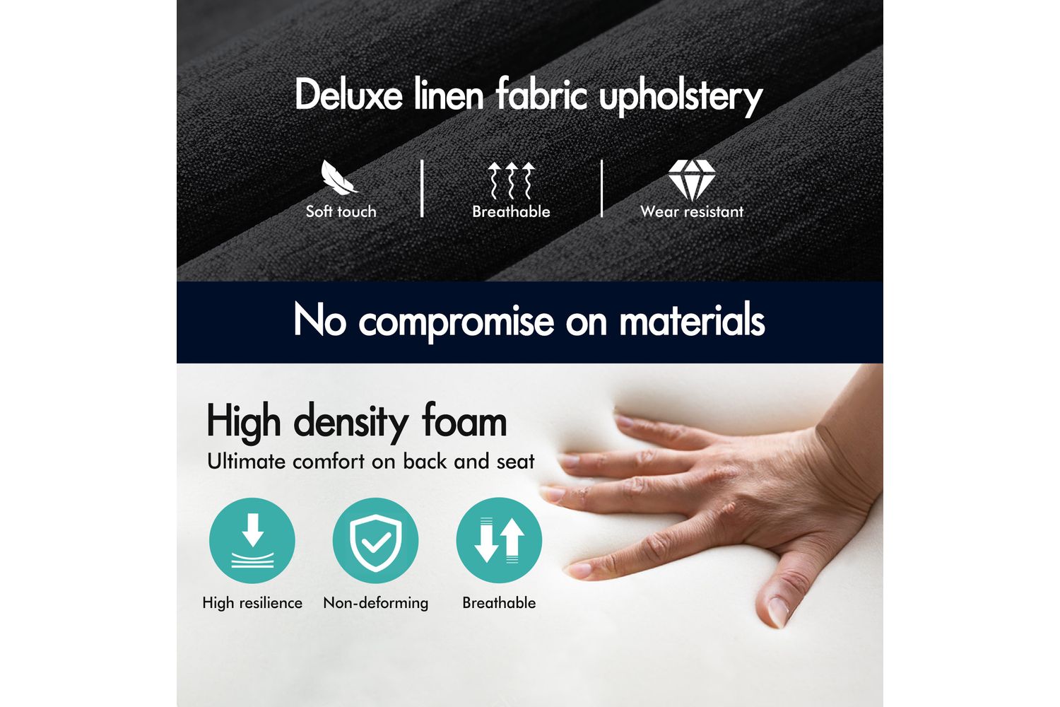 - Deluxe linen fabric upholstery for a premium look and feel