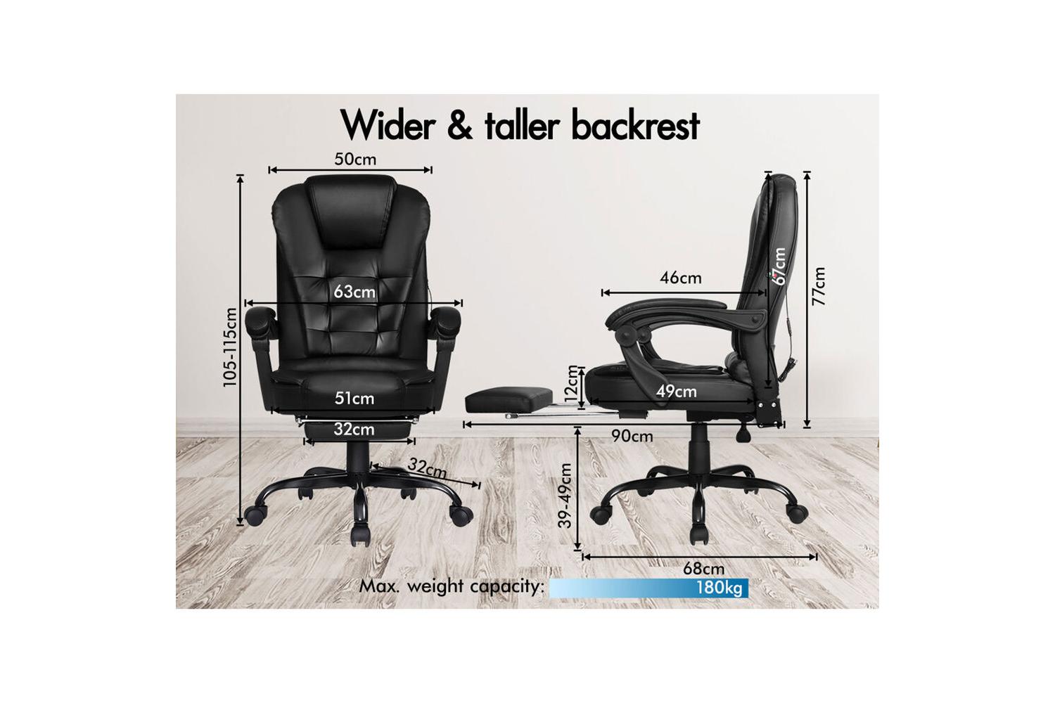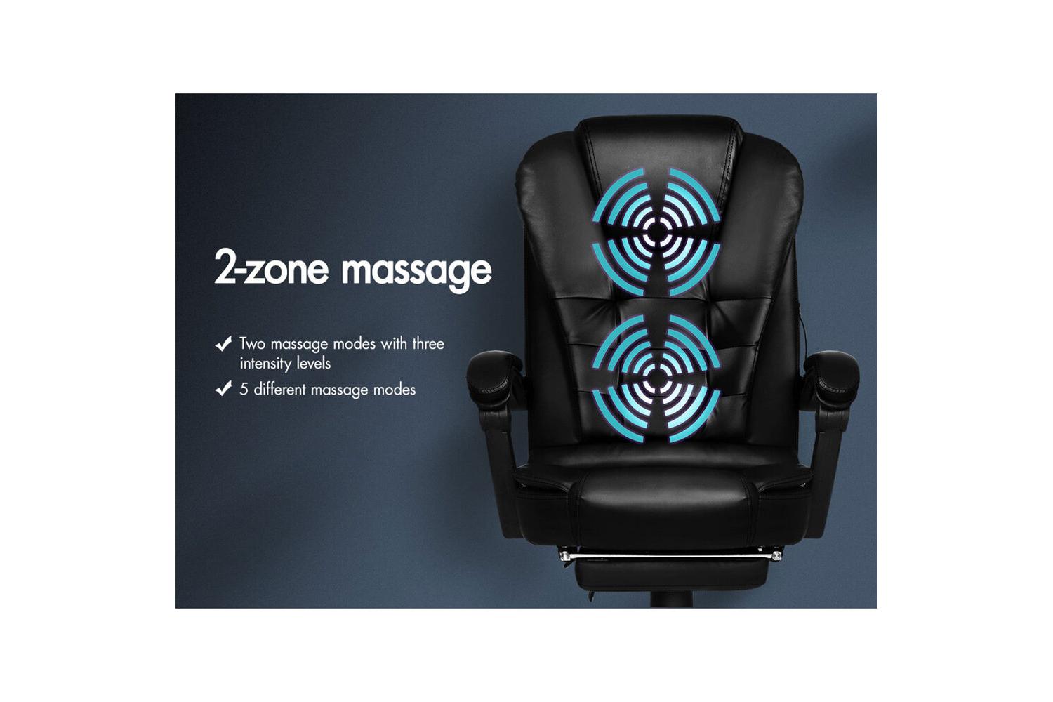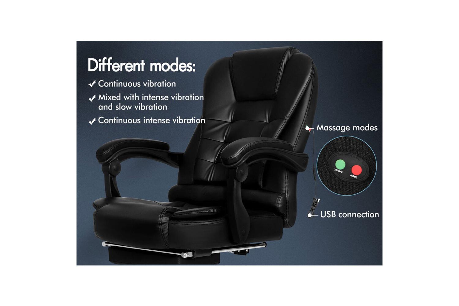 Crafted with premium faux leather in a sleek executive black finish, this chair is as stylish as it is functional. The high back design, combined with a triple-layer seat of PU leather and resilience foam, ensures lasting comfort and durability. The standout feature is the built-in massage function, offering five distinct modes to target your back and lumbar areas. Simply connect via USB and enjoy continuous, mixed, or intense vibration settings, tailored to melt away tension and keep you feeling refreshed.