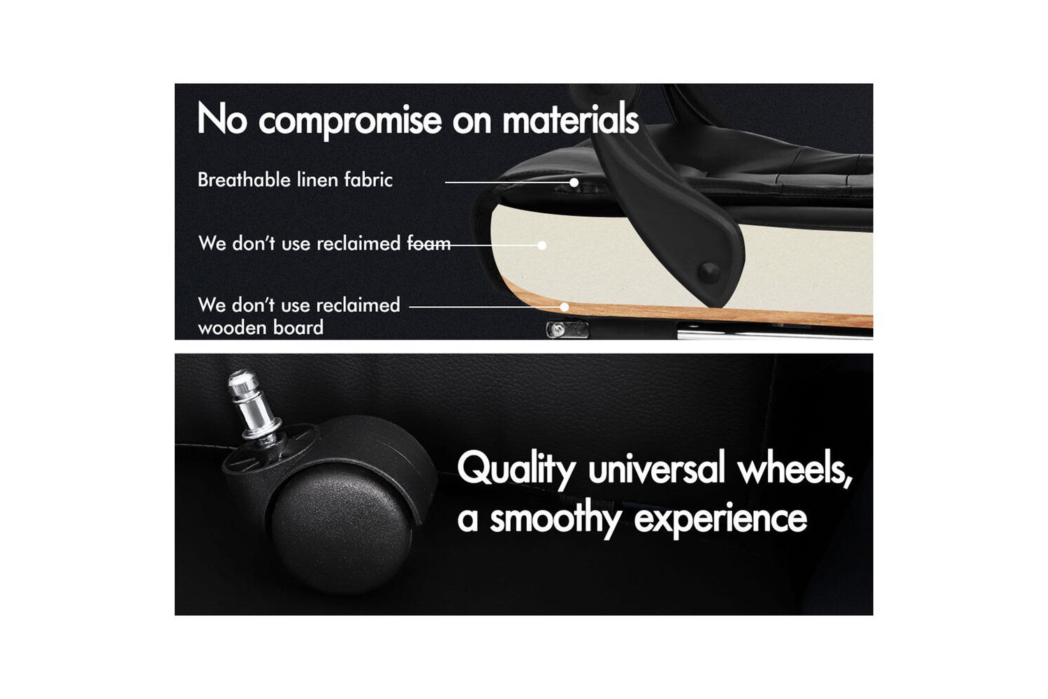 - Triple-layer seat: PU leather and resilience foam
