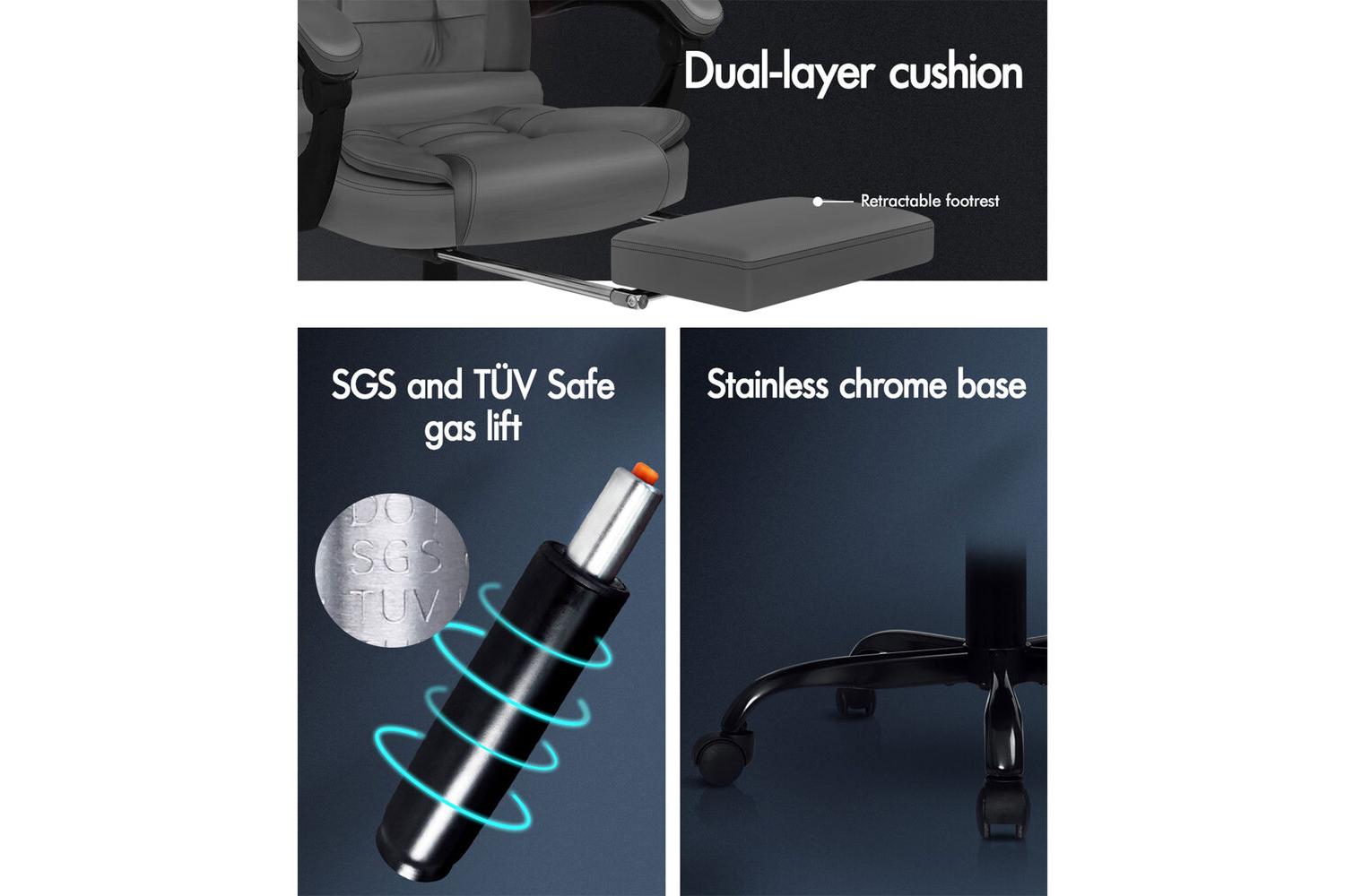 Upgrade your workspace with the Alfordson Ergonomic Office Chair With Massage Footrest, designed for Irish professionals who value both style and wellbeing. Whether you are working from home or in the office, this executive desk chair delivers the ultimate in comfort, support, and relaxation. Crafted in elegant executive grey faux leather, it blends seamlessly into any modern home office or corporate setting, making it the perfect choice for those who spend long hours at their desk.
