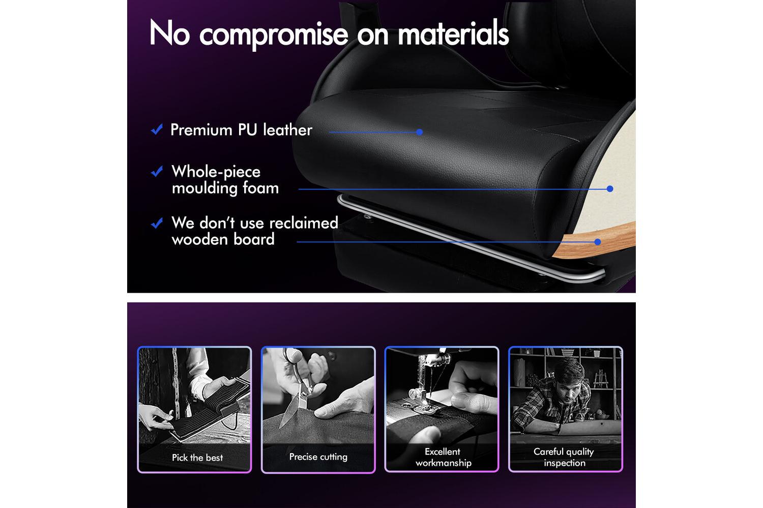 - Seat Construction: Triple-layer (PU leather, foam, steel)